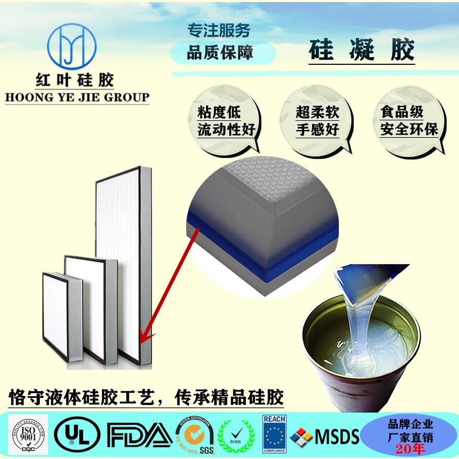 1.高效空氣過濾器通過頂部的過濾材料將經(jīng)過粗慮和中慮的空氣再次過濾掉灰塵。為了保證空氣只能通過濾材才能進(jìn)入到無塵室內(nèi),在高效過濾器的隔板四周必須進(jìn)行密封。簡單的方法是將隔板與框架用膠黏劑黏合密封住,這樣能確保空氣全部經(jīng)過過濾后進(jìn)入無塵室內(nèi),考慮到濾材使用一段時間后需要更換,因此一般的密封膠拆卸不方便,因此需要使用果凍狀的灌封膠。他具有彈性,回彈性好,柔韌性等都是為確保達(dá)到良好的密封性能;能吸收熱脹冷縮產(chǎn)生的應(yīng)變力,不能出現(xiàn)裂隙,防止漏氣;還有一點(diǎn)是需要長時間保持膠體的柔軟彈性,表面不能出現(xiàn)變硬、開裂等現(xiàn)象。