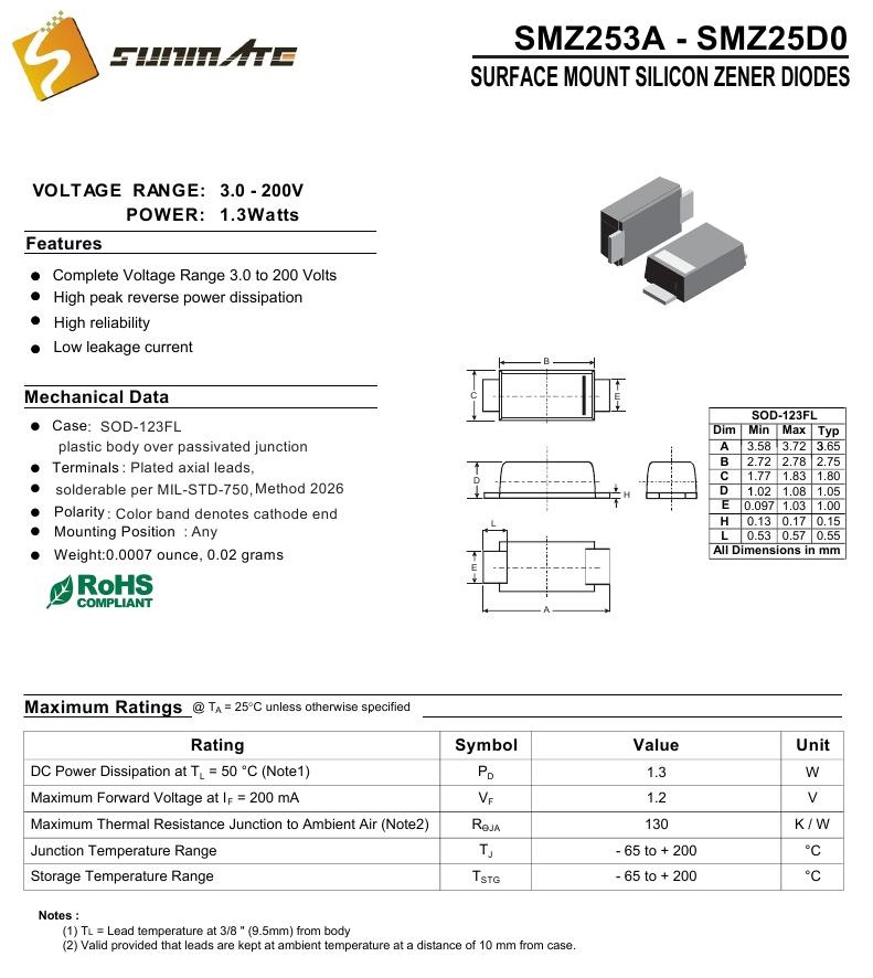 免郵-免費送樣-SMZ25111-貼片-1.3W穩(wěn)壓二極管