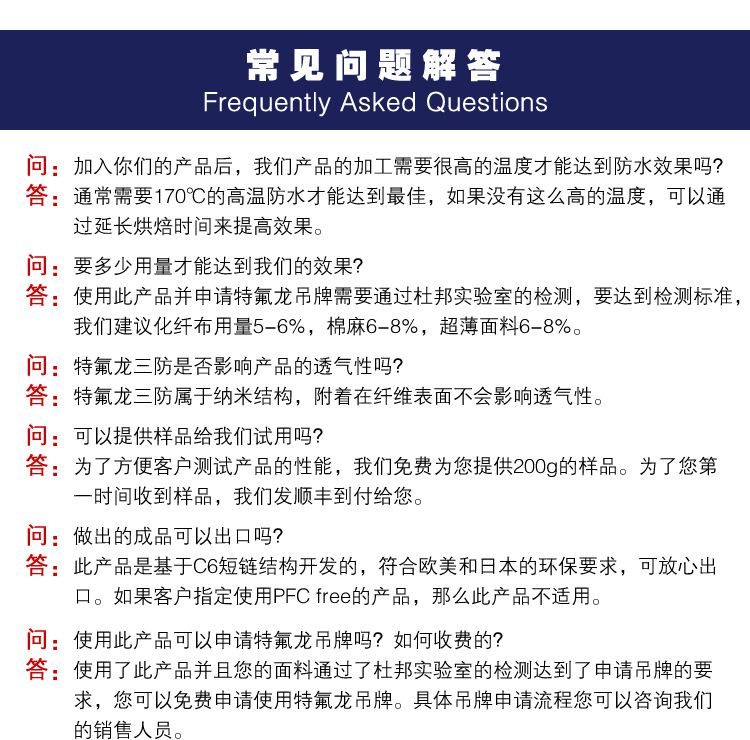 全國代理杜邦特氟龍三防整理劑紡織助劑專家杜邦三防