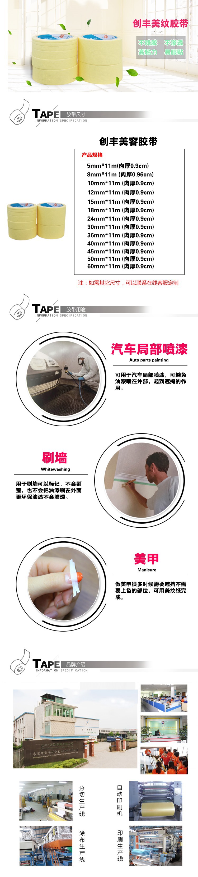 公司擁有齊全的生產設備和完善的銷售體系,自產自銷各種包裝材料。已經(jīng)形成了集研發(fā)、生產、銷售一體化的經(jīng)營局面。主要產品有:封箱膠帶、印字膠帶、雙面膠帶、文具膠帶、美紋膠帶、免刀膠紙、補強膠紙、電工膠紙、高溫膠紙、纏繞膠帶、布基膠帶、特殊膠紙、拉伸膜、打包帶等。公司己通過ISO9001:2015質量管理體系認證,產品全部通過SGS國際檢測認證。