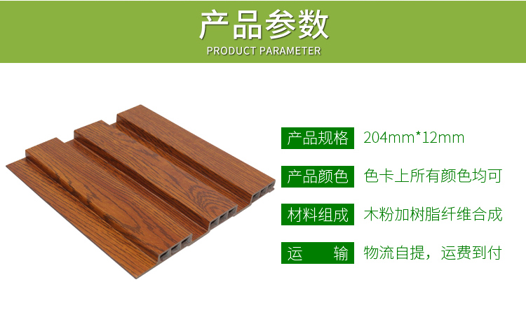 生態(tài)木-綠可木-綠可木吊頂是 臨沂聚振生態(tài)木有限公司新開(kāi)發(fā)產(chǎn)品,廣泛應(yīng)用于室內(nèi)外墻板、戶(hù)內(nèi)外地板、天花吊頂、隔音吸音背影墻、建筑遮陽(yáng)百葉系列、方木涼亭造型、大型廣告牌、垃圾箱、園林景觀、建筑行業(yè)、木塑門(mén)窗、百葉窗、建筑用圍擋板等領(lǐng)域,具有個(gè)性色彩化,既具有天然木質(zhì)感和紋理,又可根據(jù)客戶(hù)需要定制不同顏色;阻燃,聚振生態(tài)木有效阻燃,達(dá)到國(guó)標(biāo)B1級(jí);高環(huán)保無(wú)污染、無(wú)公害,產(chǎn)品不含苯,甲醛含量低于歐洲頂級(jí)環(huán)保標(biāo)準(zhǔn)EO級(jí)標(biāo)準(zhǔn);安裝方便、工期短、即裝即用、綜合成本低,節(jié)能,防蟲(chóng)蛀、防水、防潮、防腐、不變形、耐候等優(yōu)點(diǎn),生態(tài)木由聚氯乙烯(PVC)與木粉合成制造,可100%回收利用,是傳統(tǒng)建筑裝修中最好的環(huán)保替代材料。