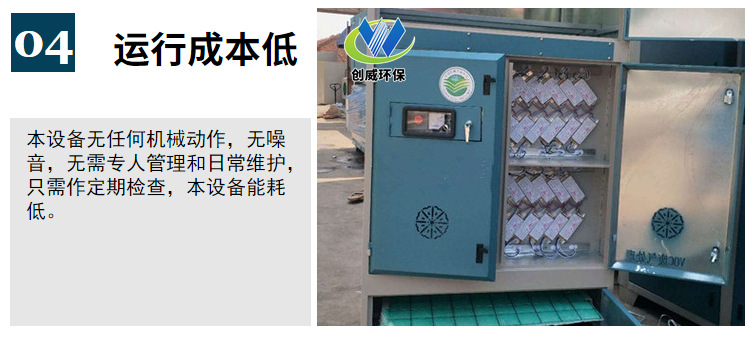 四、運(yùn)行成本低:本設(shè)備無(wú)任何機(jī)械動(dòng)作,無(wú)噪音,無(wú)需專(zhuān)人管理和日常維護(hù),只需作定期檢查,本設(shè)備能耗低,(每處理1000立方米/小時(shí),僅耗電約0.1度電能),設(shè)備風(fēng)阻極低<30pa,可節(jié)約大量排風(fēng)動(dòng)力能耗。