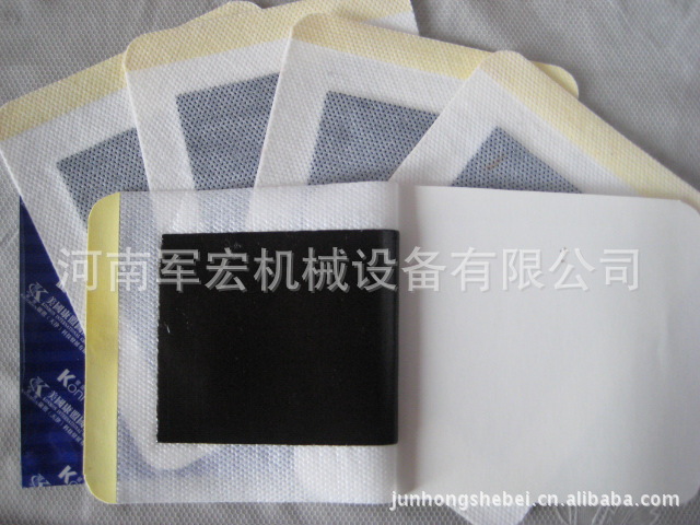 生產(chǎn)工藝為:膏藥熬制(企業(yè)自制)→上料→制帶復(fù)合→凝結(jié)→分離切片→復(fù)合→切片(成品)。