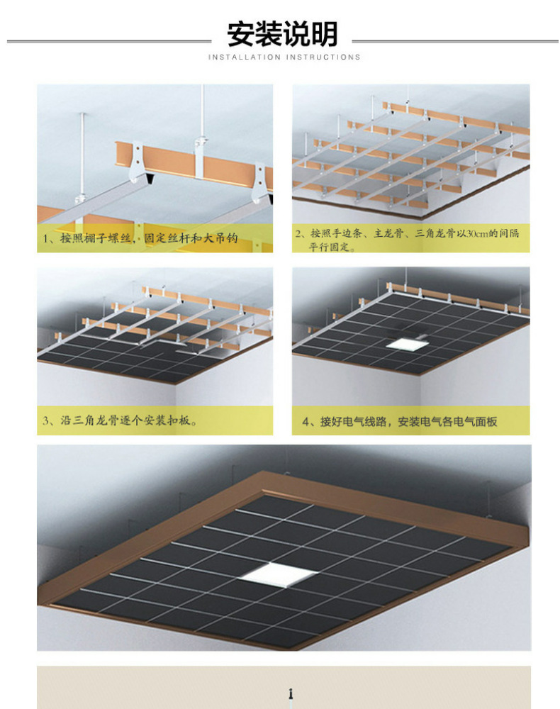 集成吊頂安裝完畢后,與傳統(tǒng)扣板相比較,給人感覺更清透更舒適,在一般的情況下,集成吊頂主要安裝在廚房、衛(wèi)生間、陽臺、客廳,如果要清洗,必須分開解決。衛(wèi)生間、陽臺的鋁扣板通常來說,是沒有油漬的,就好打理,只要用軟布帶水擦洗就可以了。而安裝在廚房的鋁扣板因為油煙比較大要清洗的時候需要做深度清潔,集成吊頂最大的優(yōu)勢就是拆裝很方便,先用吸盤吸住單片板的任何一個角,用力往下拉,就可以了,完成清潔之后,重新在扣上去就可以了