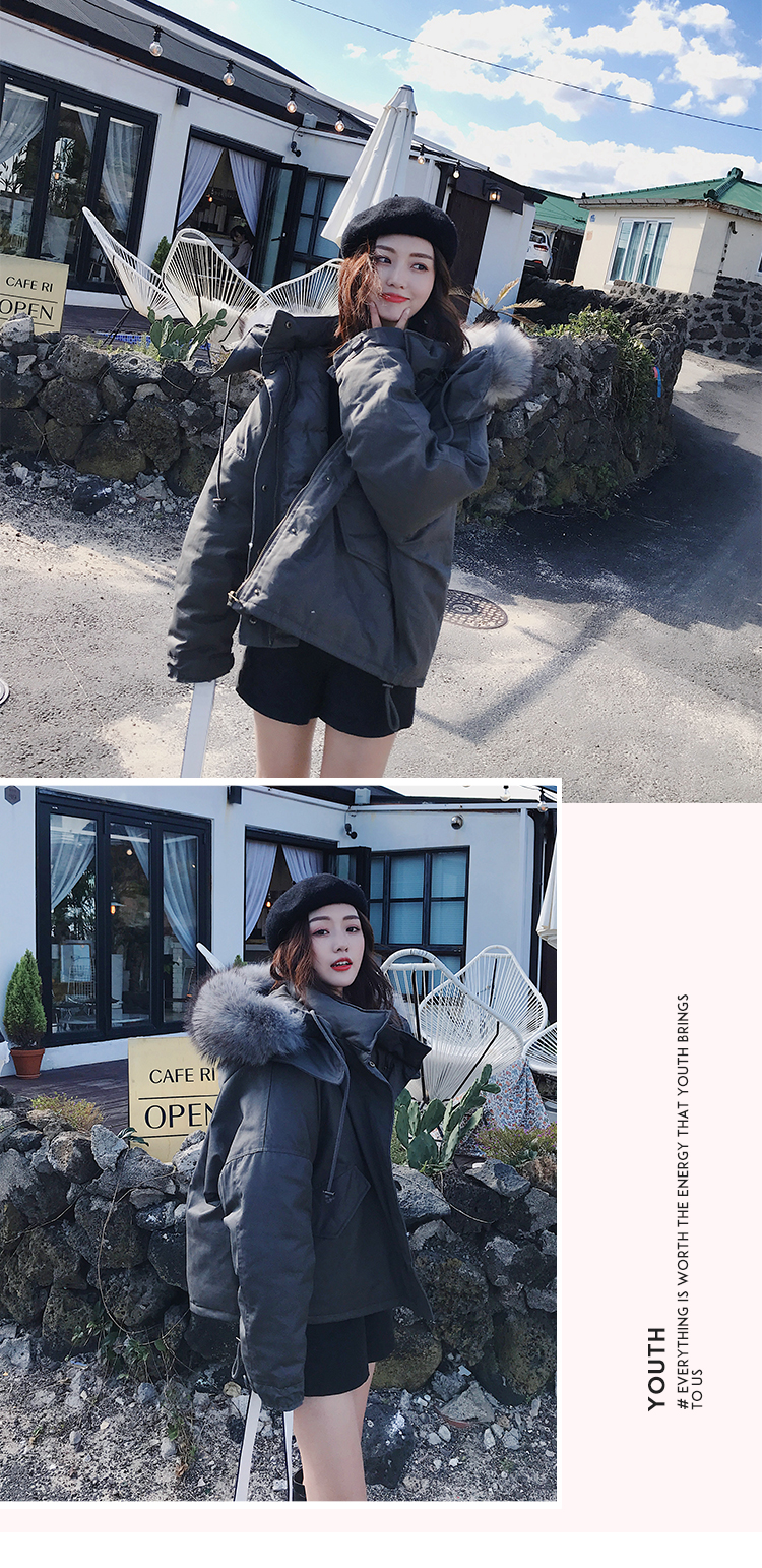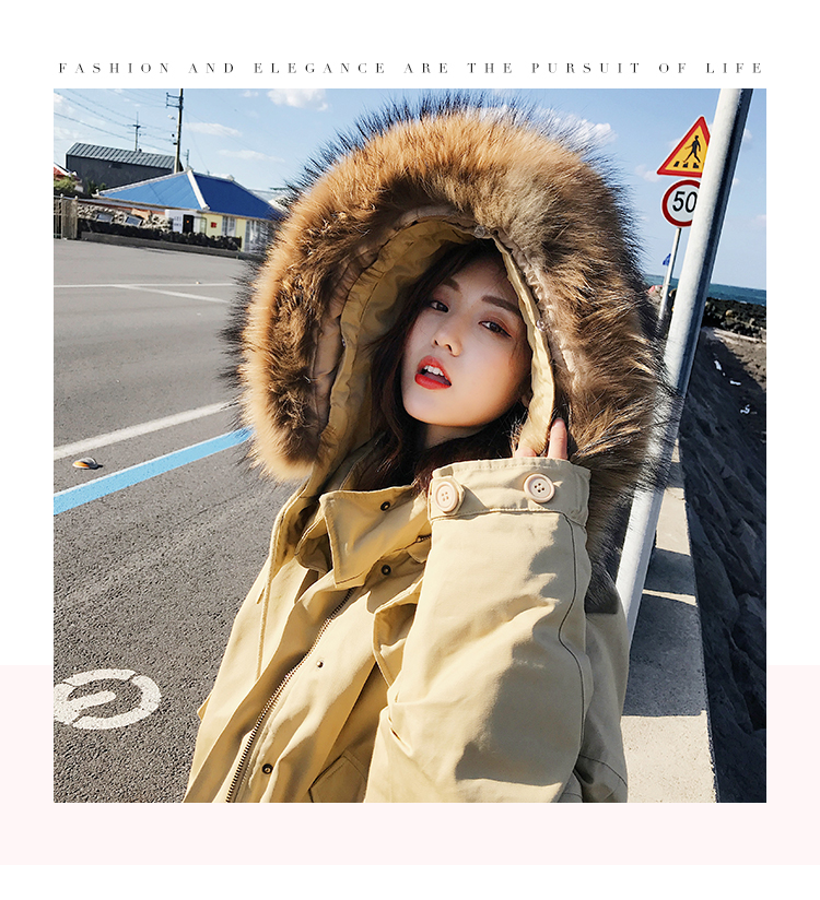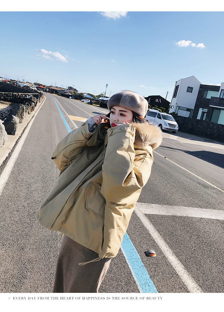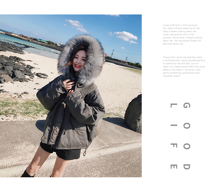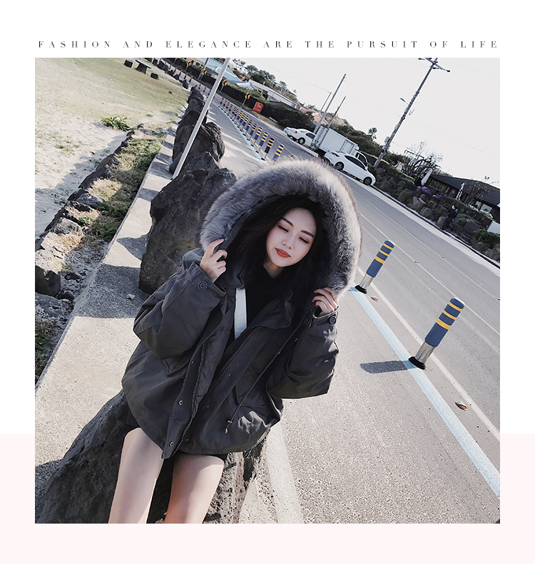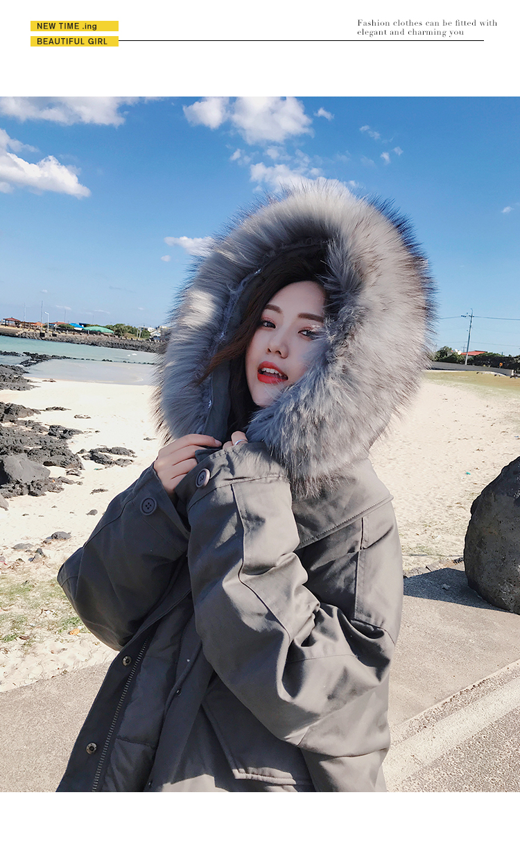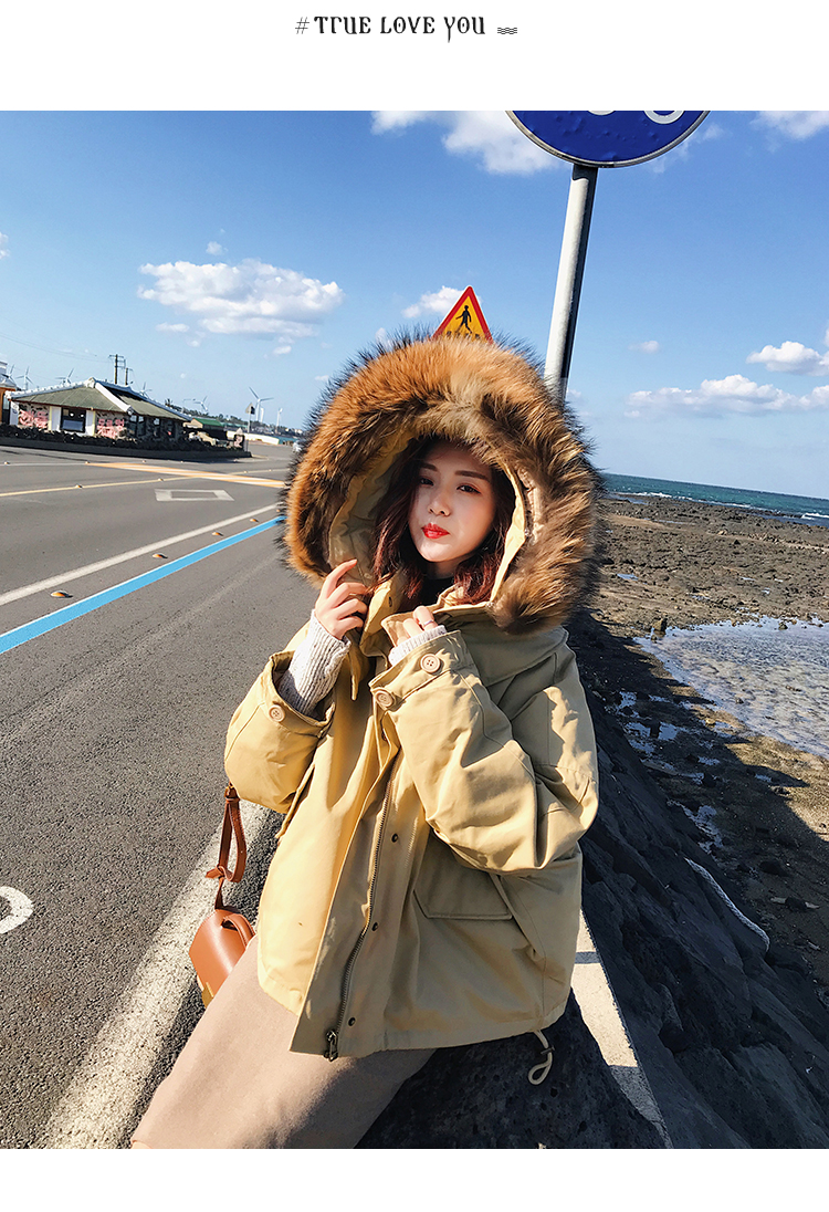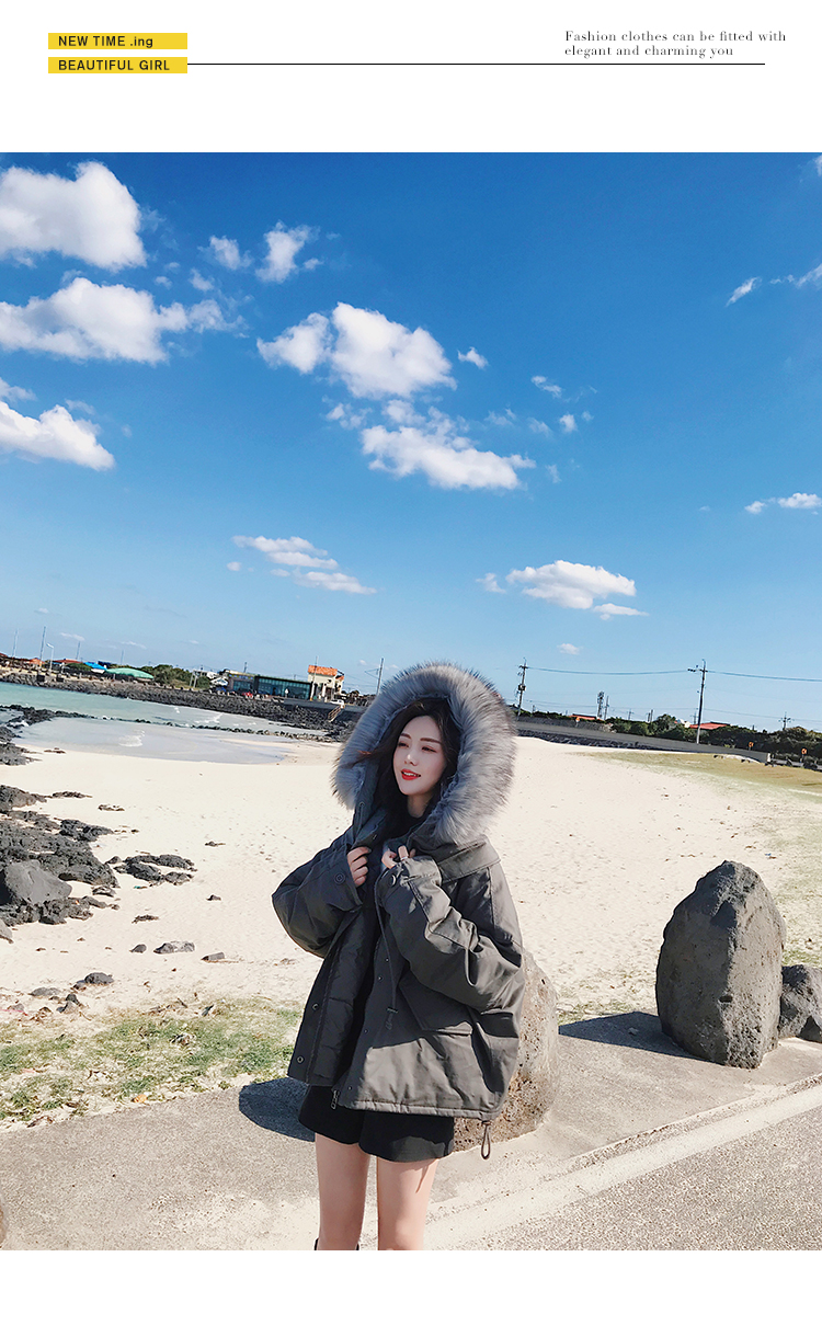 2019冬裝新款品牌折扣女裝大毛領(lǐng)棉衣女中長(zhǎng)款韓版加厚夾棉工裝chic棉服外套潮