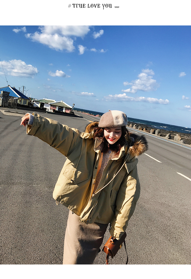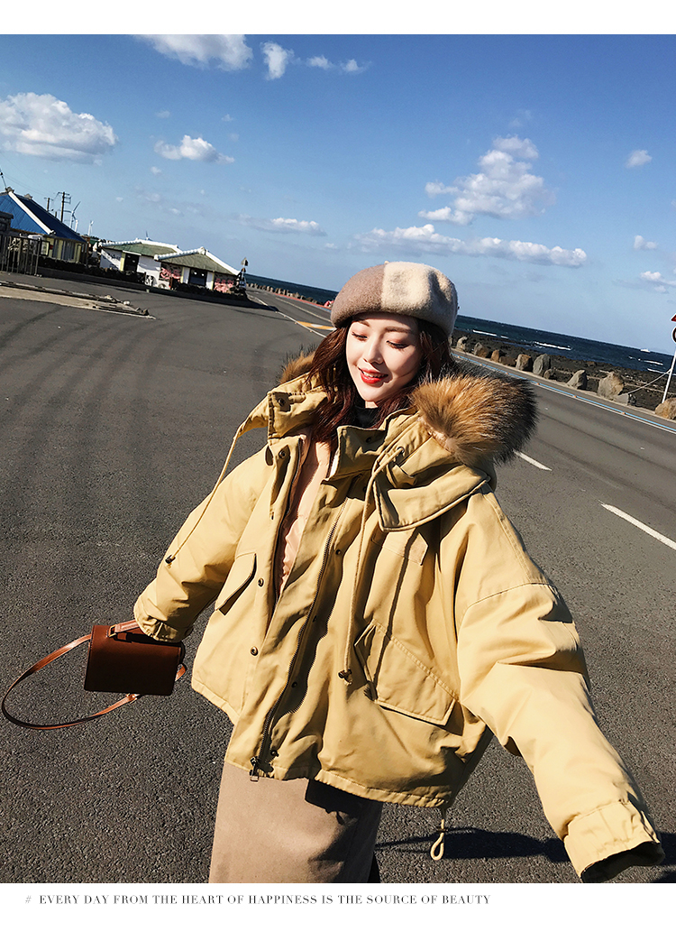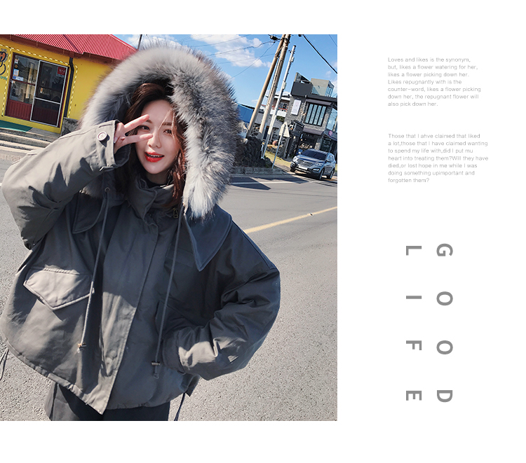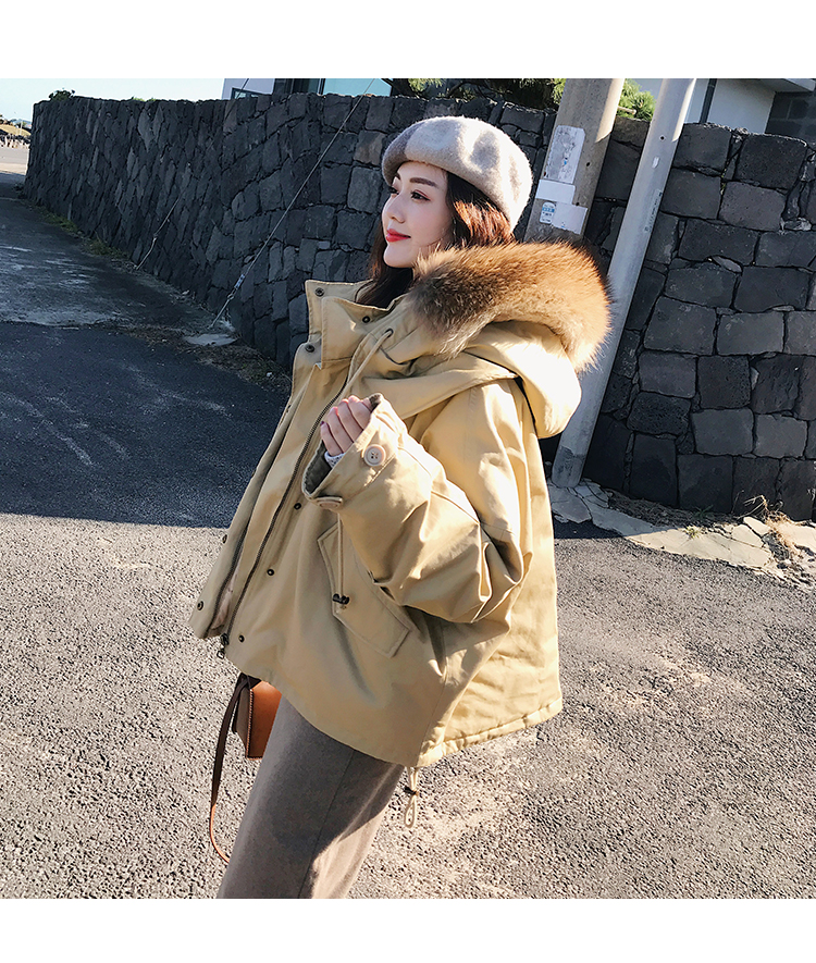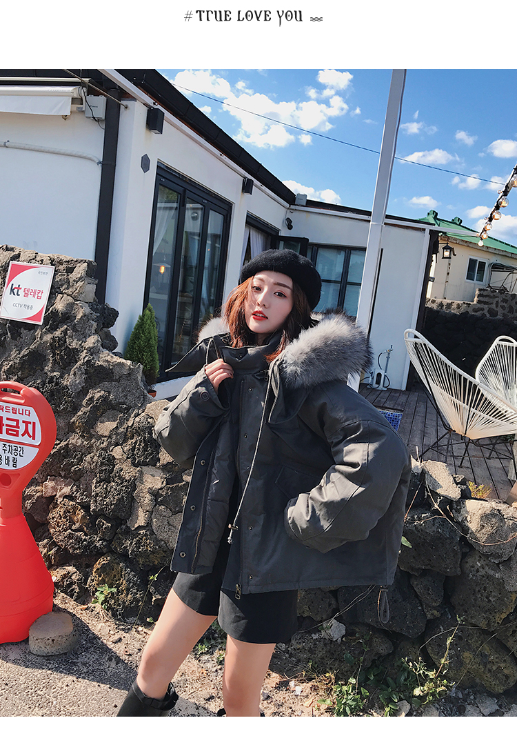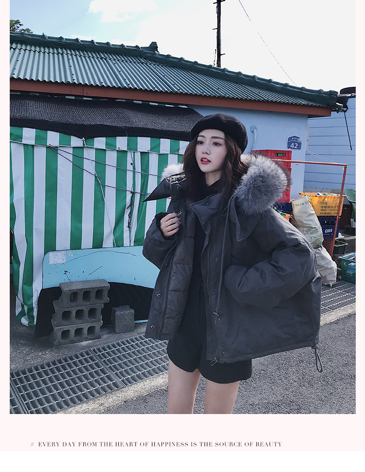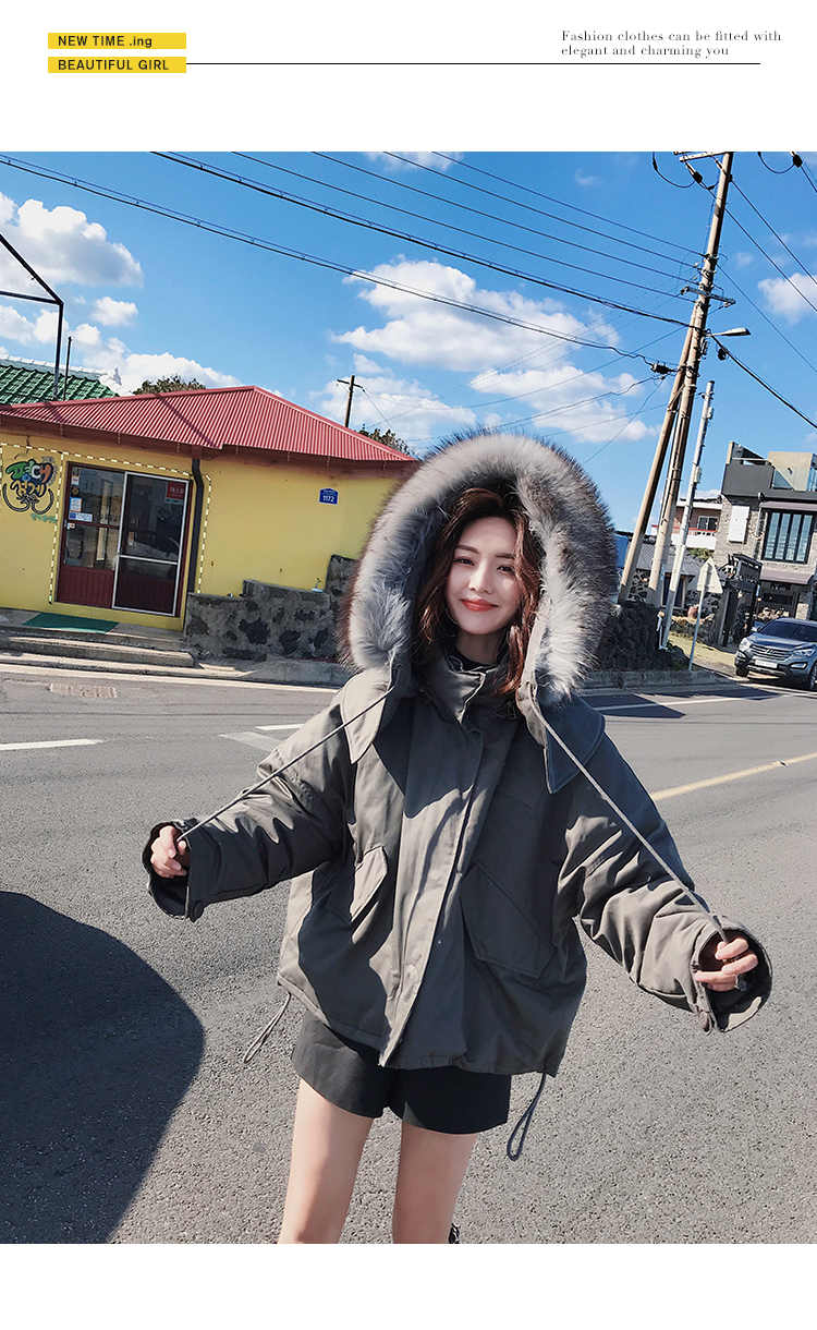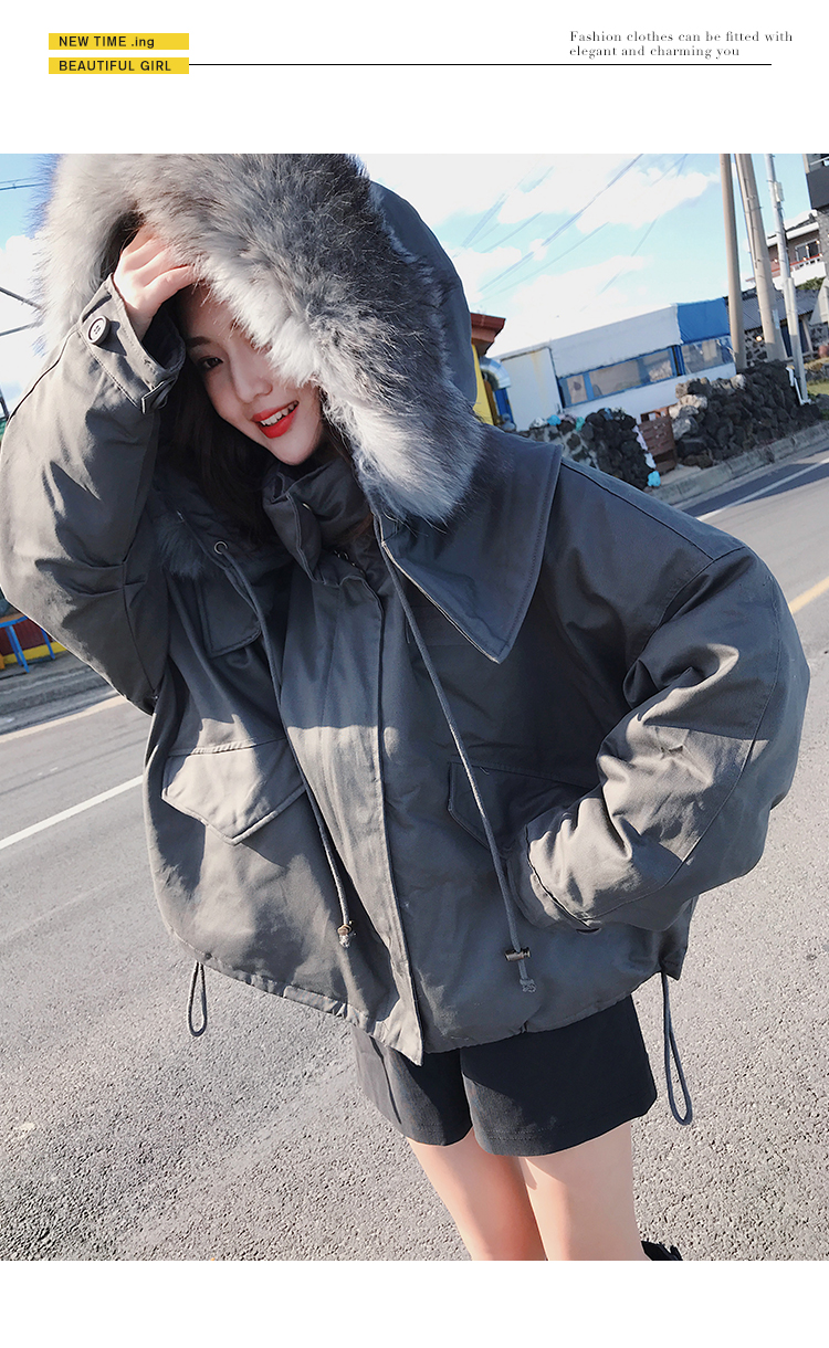 2019冬裝新款品牌折扣女裝大毛領(lǐng)棉衣女中長(zhǎng)款韓版加厚夾棉工裝chic棉服外套潮