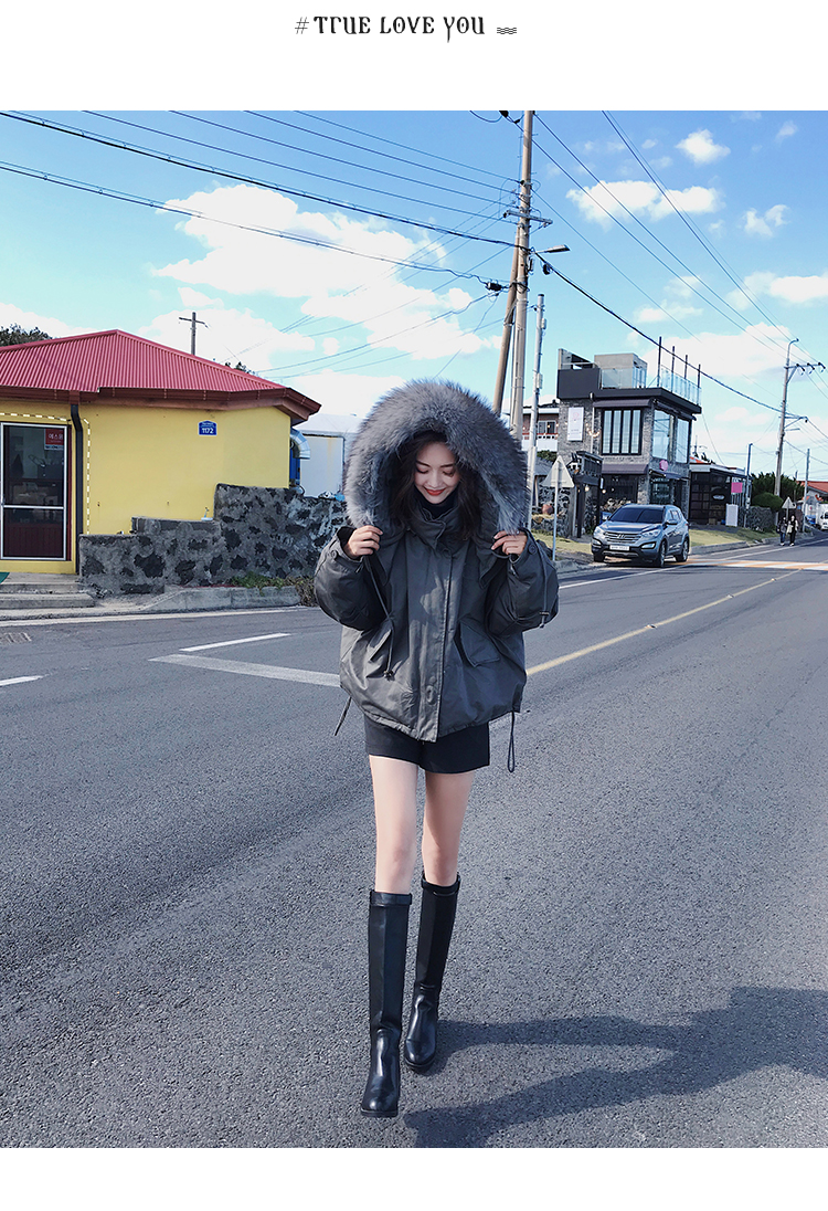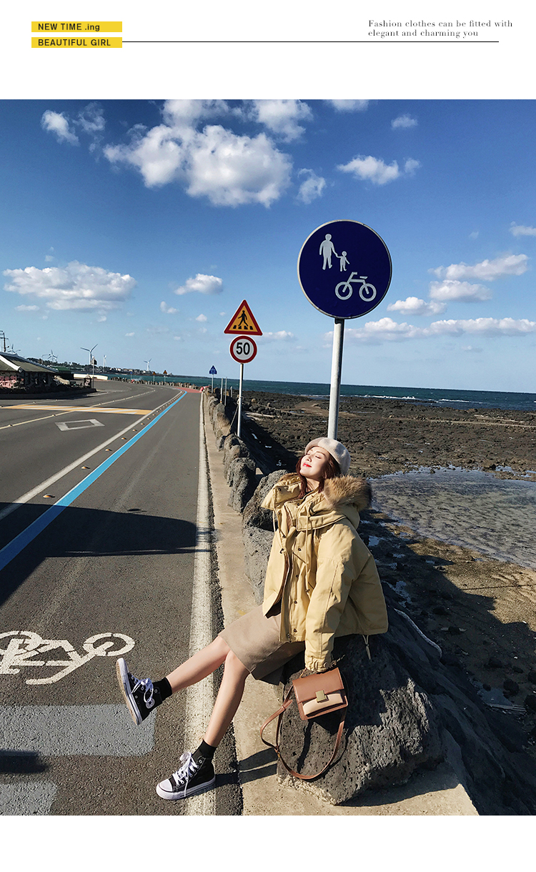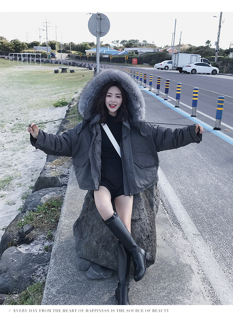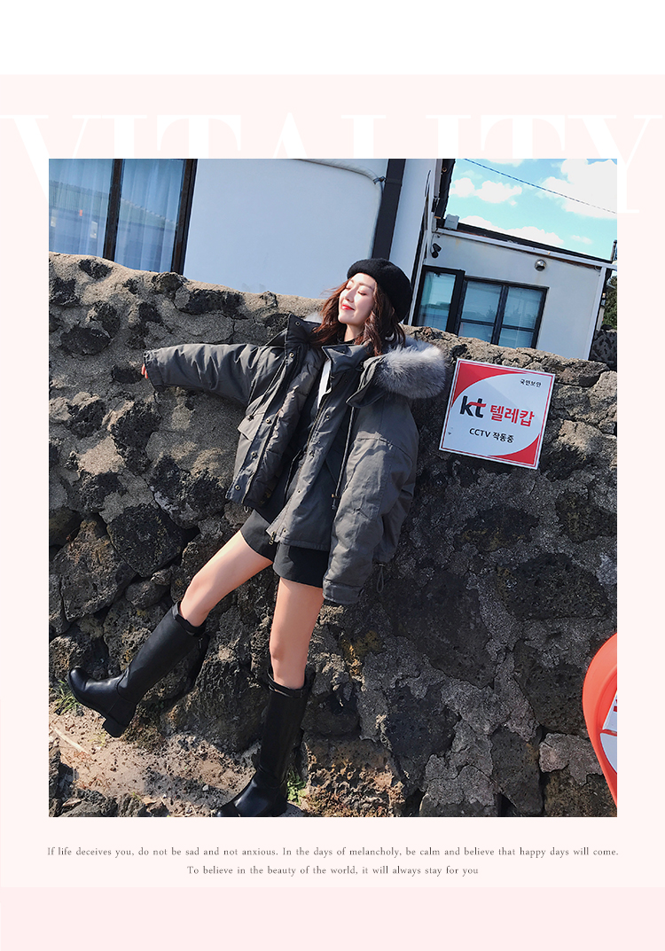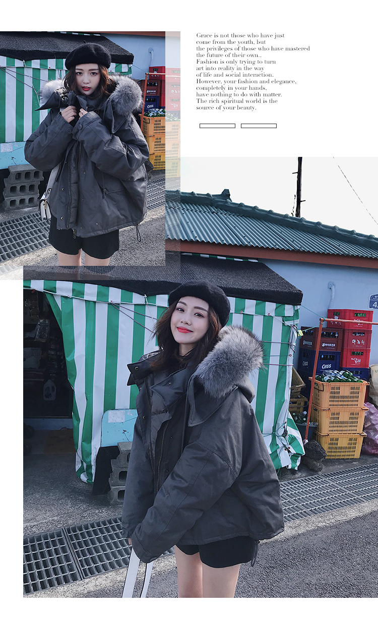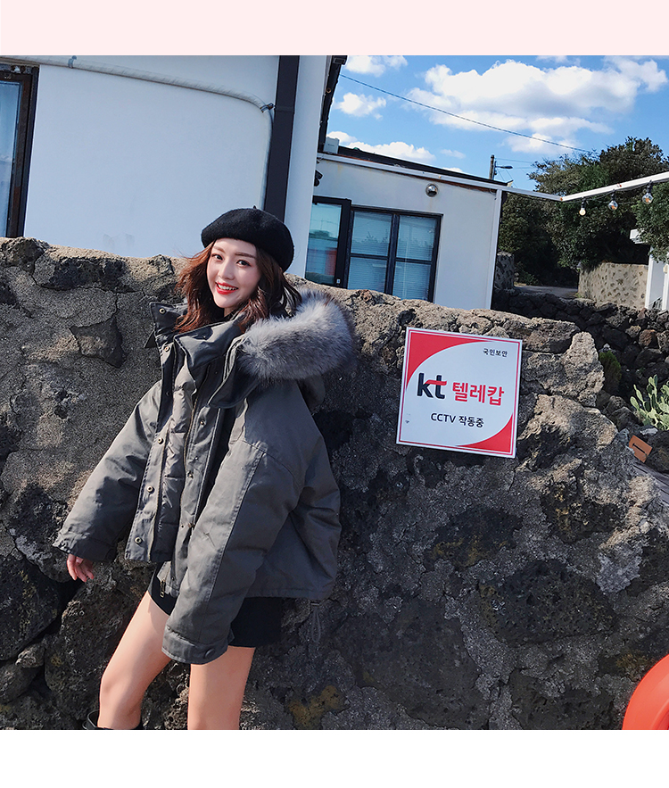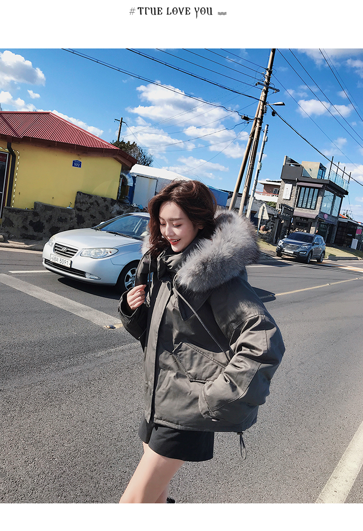 2019冬裝新款品牌折扣女裝大毛領(lǐng)棉衣女中長(zhǎng)款韓版加厚夾棉工裝chic棉服外套潮