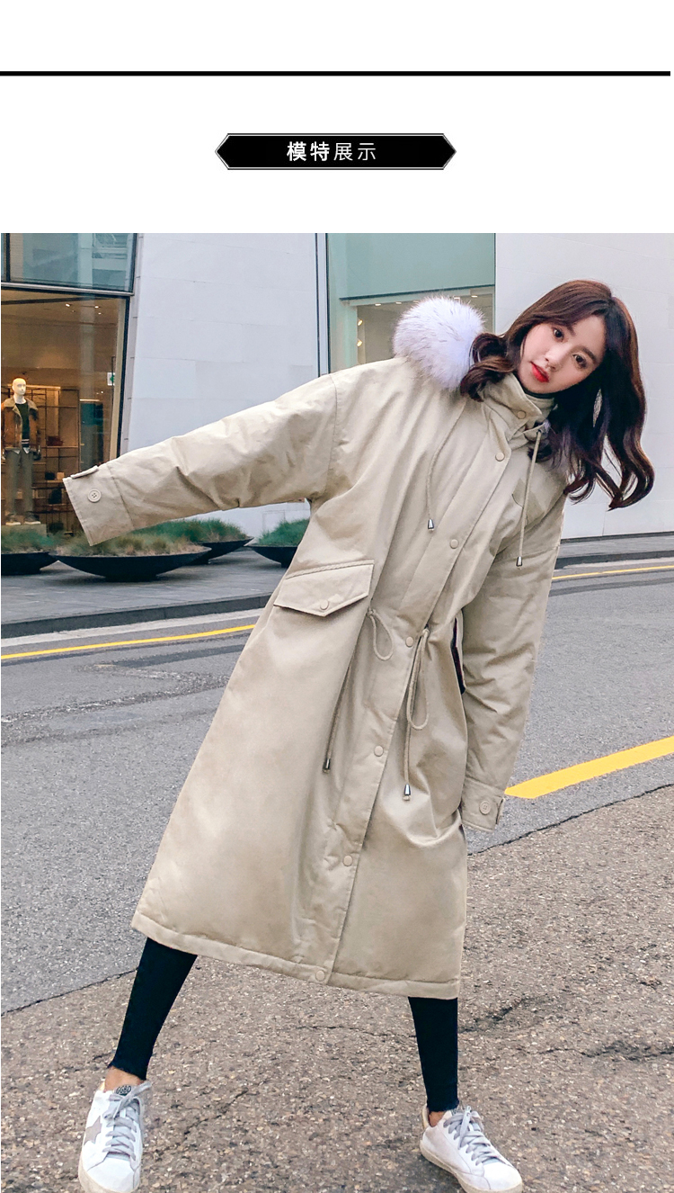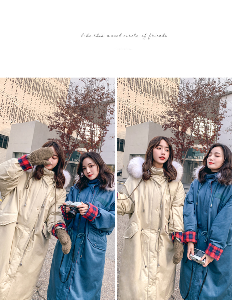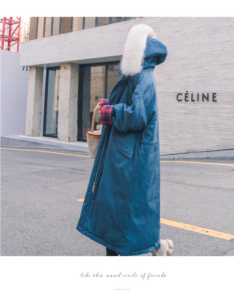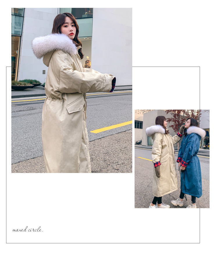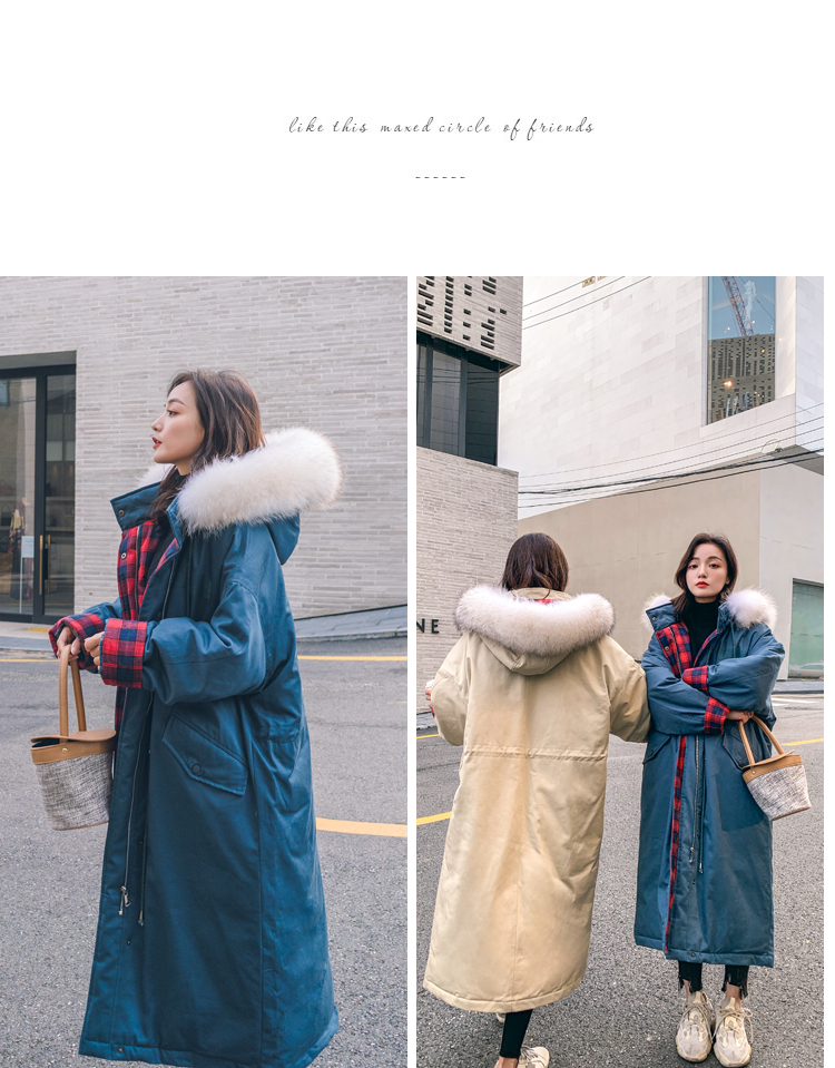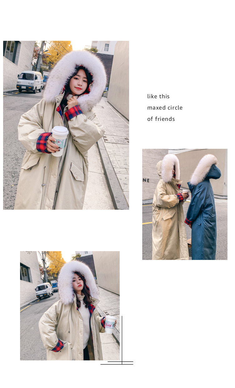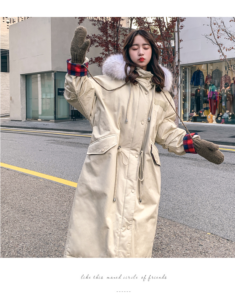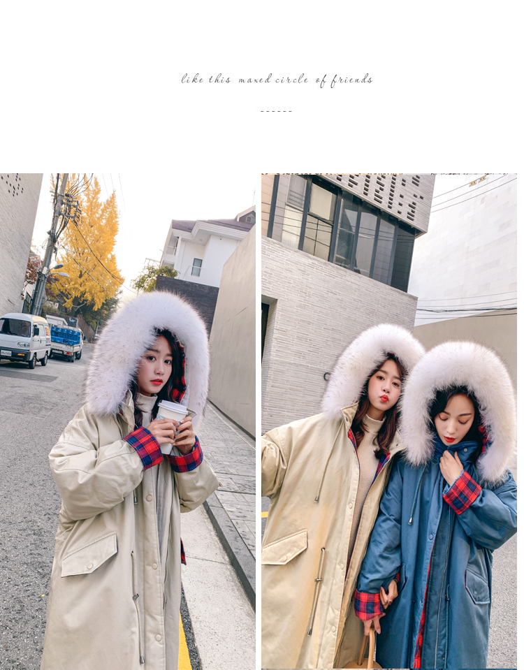品牌折扣女裝工裝格子羽絨棉衣女冬棉服18新款韓版ins大毛領(lǐng)長款過膝加厚棉襖
