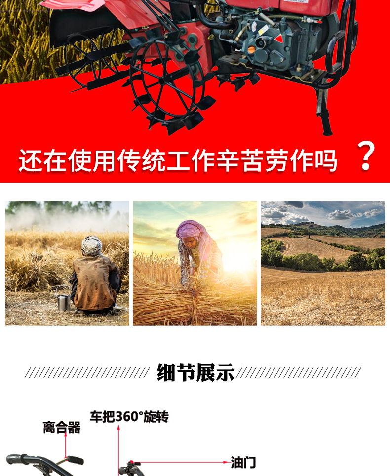 標(biāo)配 主機(jī)+旋耕刀+膠輪+除草輪+鐵輪+開溝刀