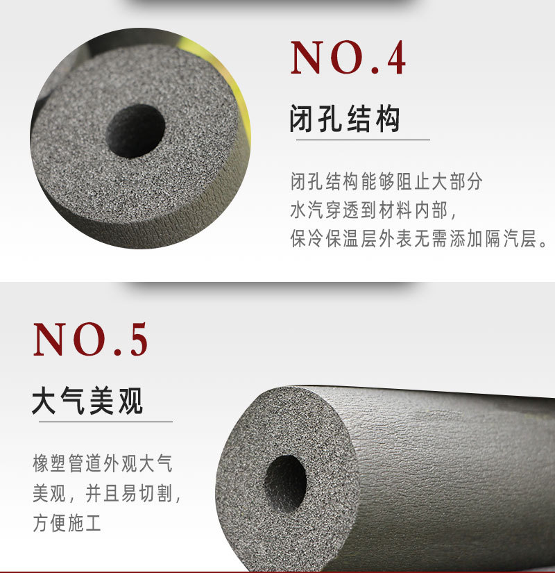 3、抗震性能好:因大量獨(dú)立閉孔氣泡而具有良好的彈性,能大限度地減弱冷、熱水管道在使用過程中產(chǎn)生的振動(dòng)和共振。