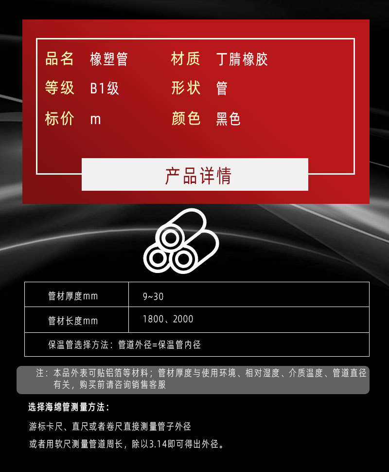 厚度:空調(diào)管9mm,工程管:15-30mm,