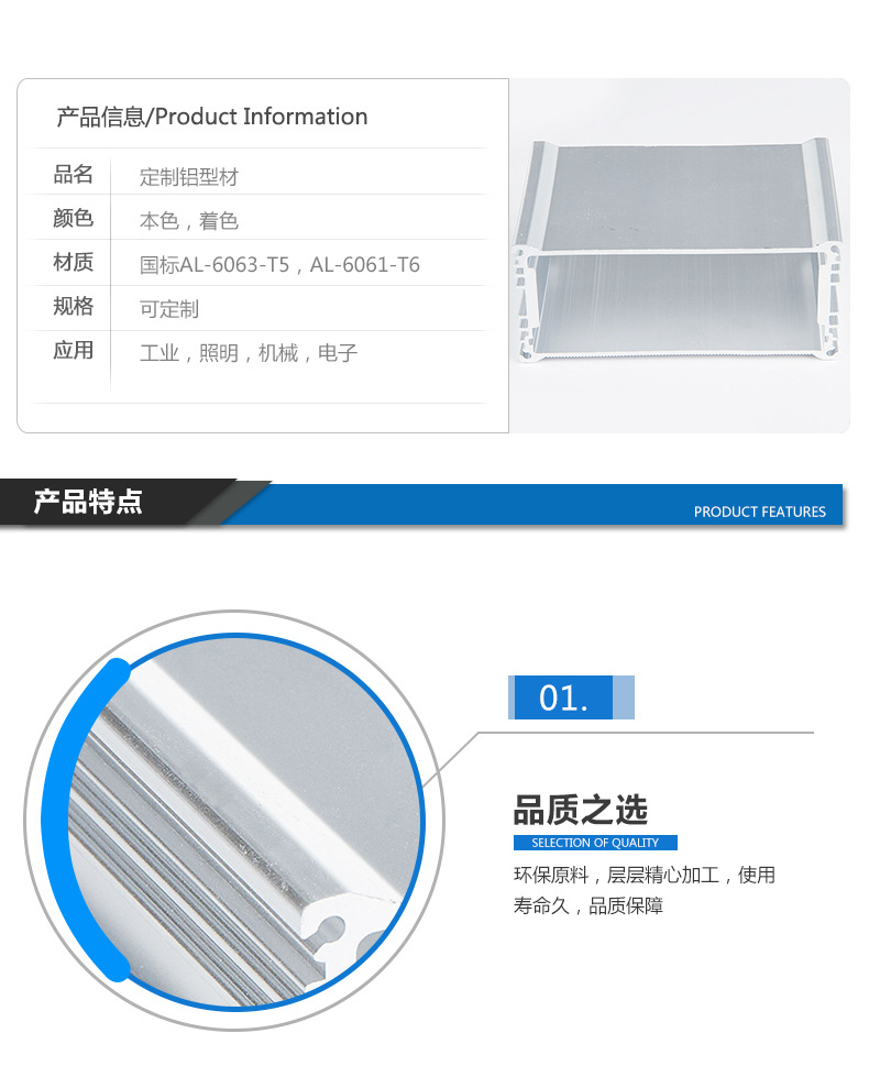 東莞市信從義五金制品有限公司是一家具有現(xiàn)代化鋁型材生產(chǎn)技術(shù)和模具生產(chǎn)的大型企業(yè),專注于高品質(zhì)鋁型材定制生產(chǎn),擁有多年的鋁型材開模定制生產(chǎn)經(jīng)驗。專業(yè)定制各類高倍數(shù)散熱器,太陽花散熱器,汽車燈LED鋁型材、移動電源、U盤鋁型材外殼等。常用國標(biāo)鋁棒、鋁排、鋁管都有大量現(xiàn)貨供應(yīng)。業(yè)務(wù)聯(lián)系:13829267784陳先生