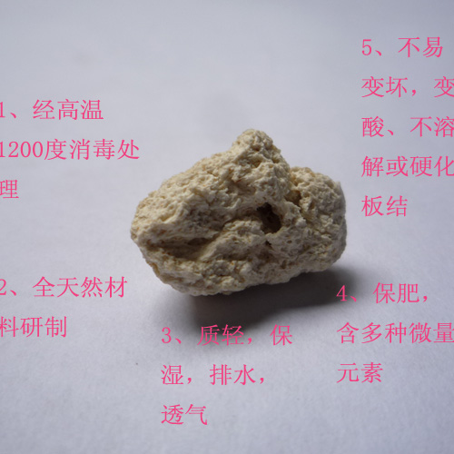 特點(diǎn):園藝類:盆景石、無土栽培基料、屋頂花園基料。水族類:魚缸鋪底石、魚缸景觀石??勺鰹V料濾材。多肉植物及盆景用,能夠吸附土壤種多余的鹽分,緩釋肥效,避免肥傷。含有豐富的微量元素,PH值6.5-7.5。