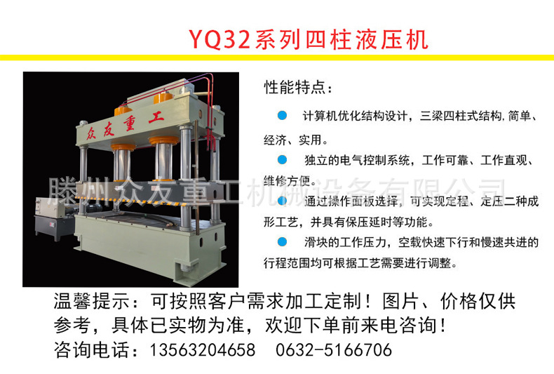 滕州眾友重工400噸汽車內(nèi)飾成型液壓機(jī)400T雙缸大臺(tái)面四柱油壓機(jī)按需定制壓力機(jī)