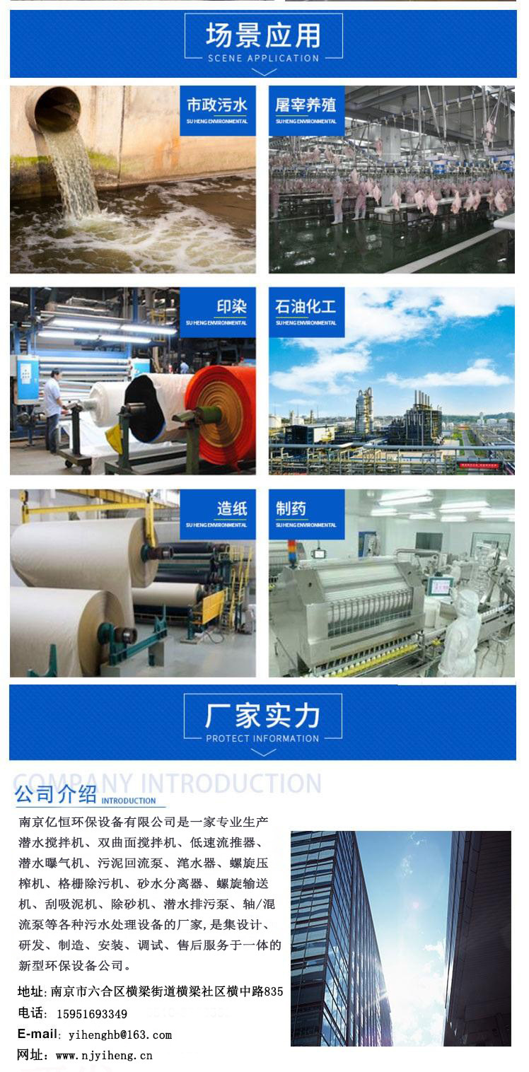 主營產(chǎn)品: 潛水攪拌機, 雙曲面攪拌機, 噴泉曝氣機, 低速推流器, 回轉(zhuǎn)式格柵除污機, 砂水分離器, 立式環(huán)流攪拌機, 潷水器, 漩流沉砂池除砂機, 一體化污水處理設備, 污泥回流泵, 中心傳動刮泥機, 配件