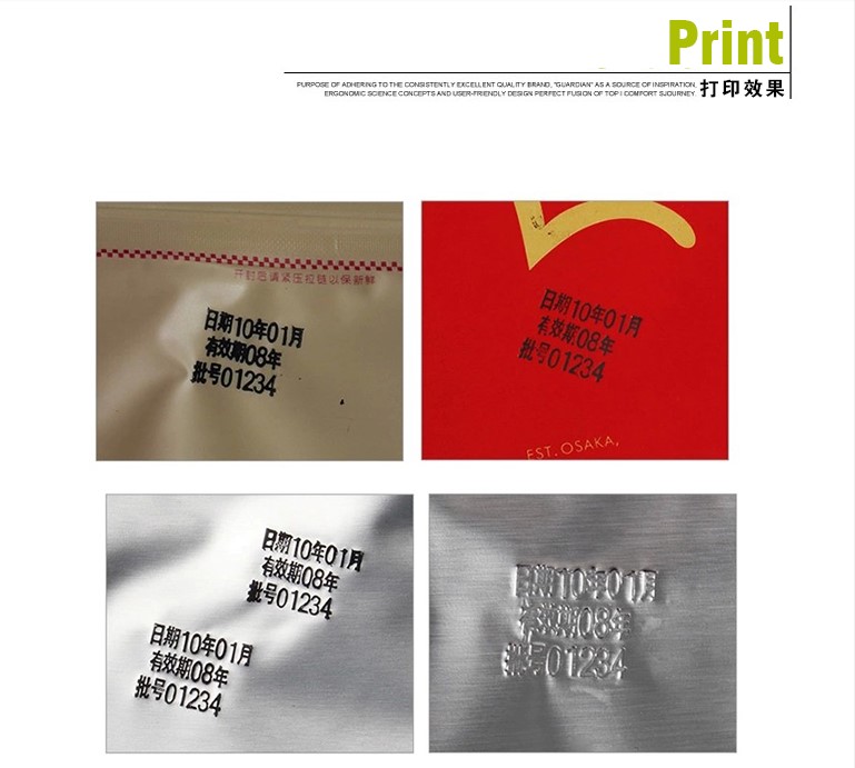 自動紙盒生產(chǎn)日期打碼機廣泛應(yīng)用于醫(yī)藥、食品、化妝品、五金等標(biāo)簽、塑料袋日期、批號、保質(zhì)期打印等行業(yè)的各種軟包裝紙盒、紙張、塑料袋鋁箔等材料表面打碼。
