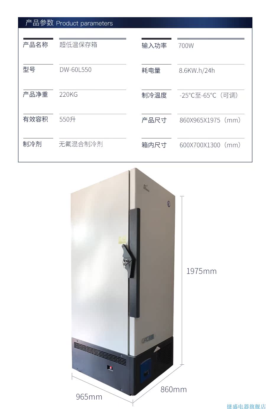 捷盛-60度550升大型立式超低溫冰箱商用實驗用超低溫冰柜低溫冷柜