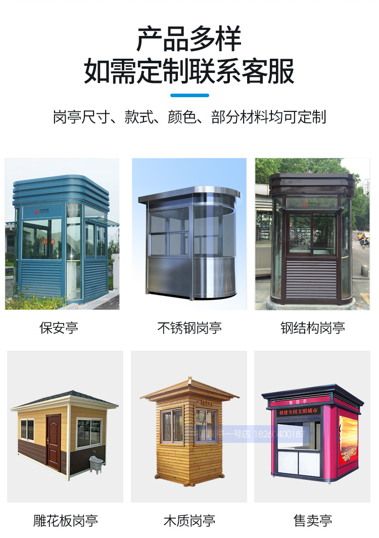 4、搭配靈活,亭內(nèi)各種配置如照明燈、電源插座、電控箱和木質(zhì)電腦桌、換氣扇等等一應(yīng)俱全,滿足各類功能所需,并可配置收費系統(tǒng),以滿足各種需求。