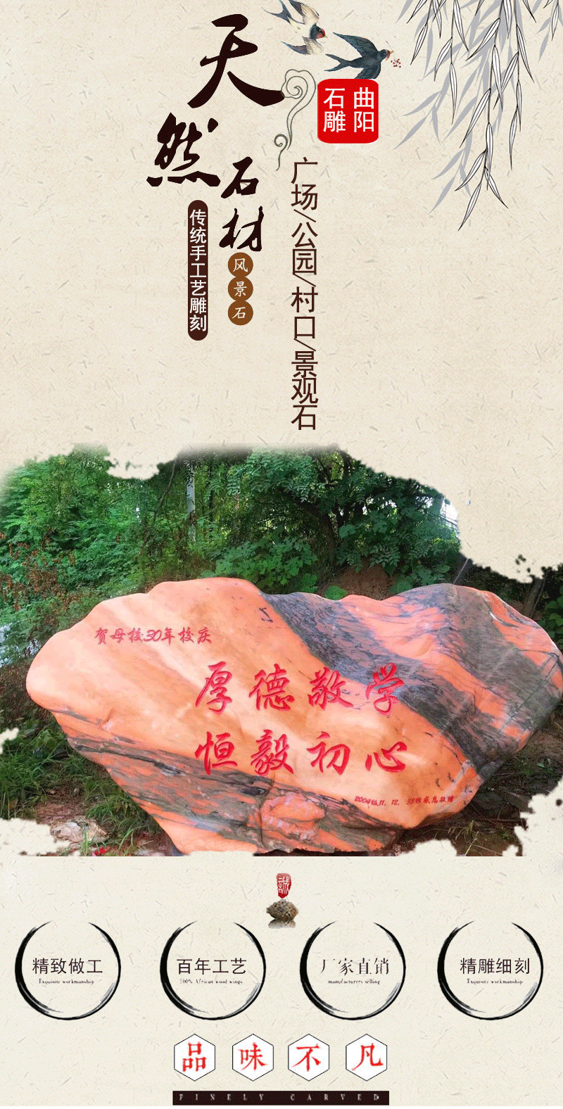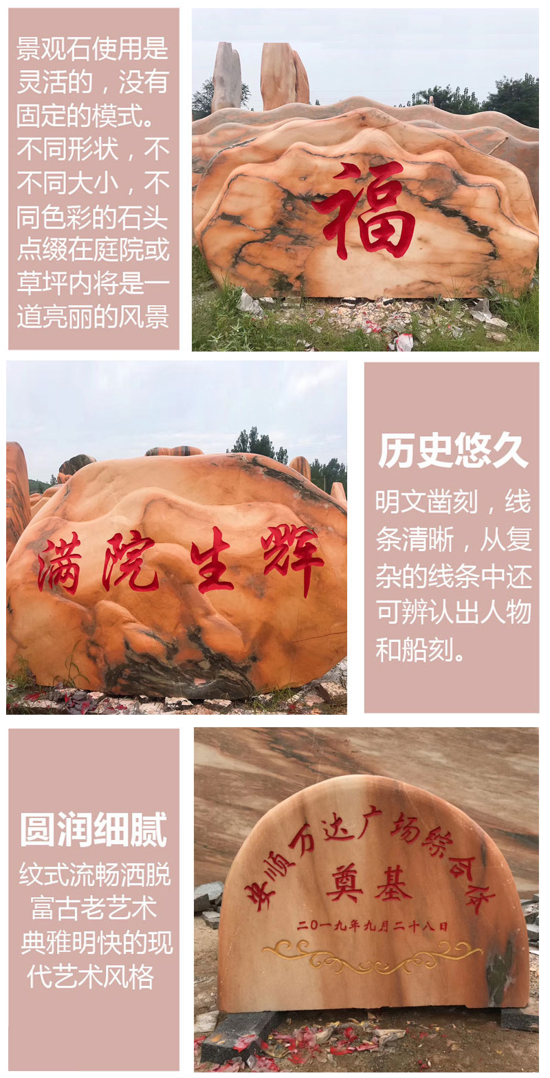嶺億雕塑-風(fēng)景石-晚霞紅景觀石刻字-園林公園假山石庭院裝飾擺件
