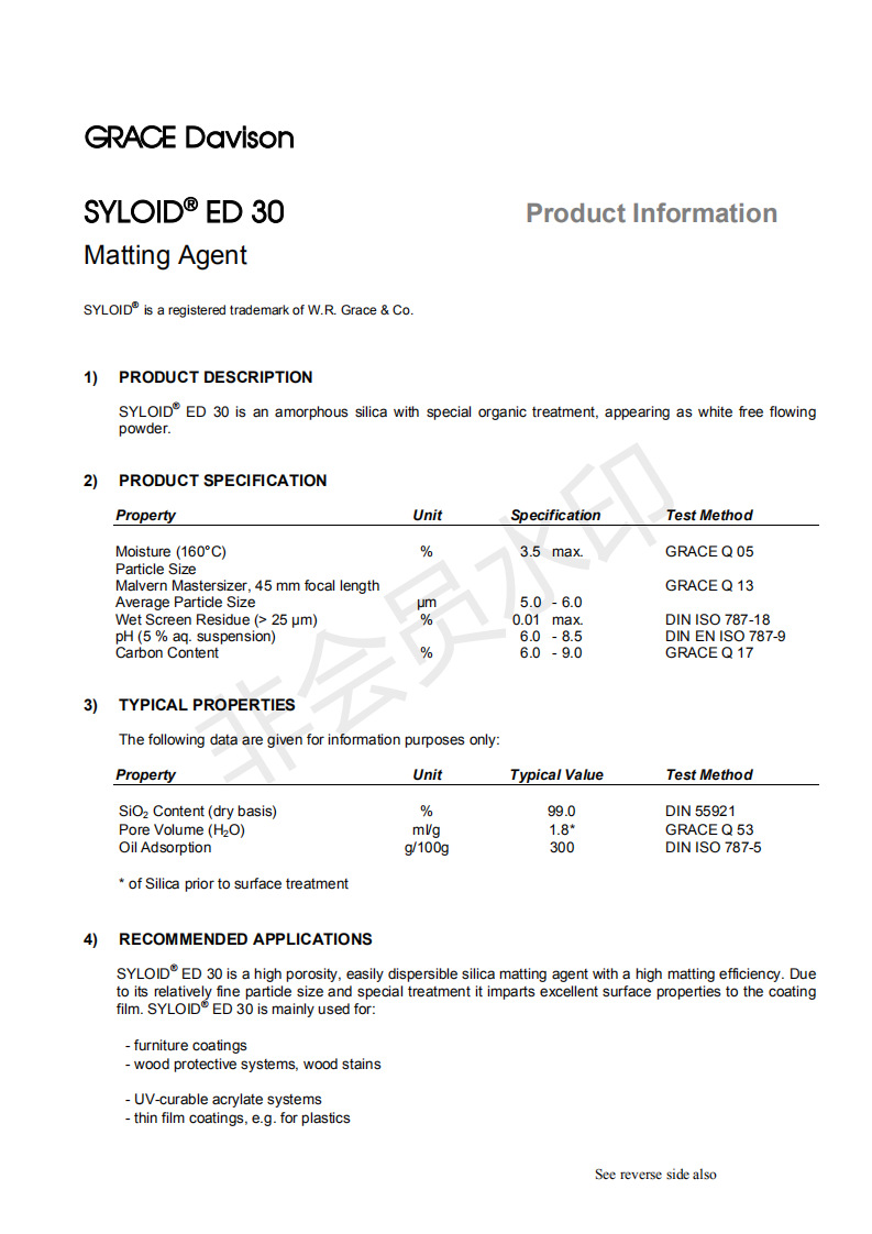美國格雷斯Grace消光粉ED30-進口消光粉ED-30價格-啞光劑