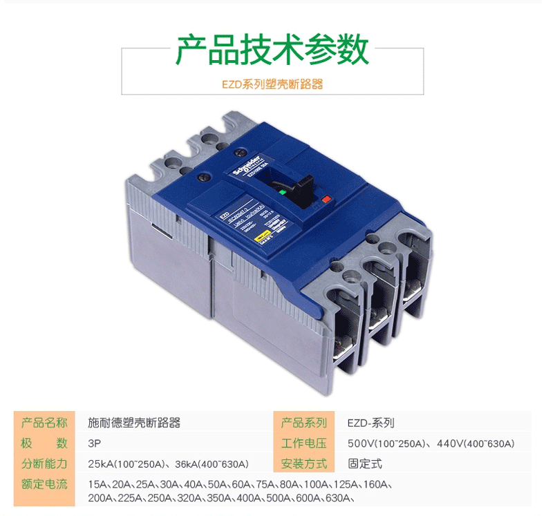 供應施耐德塑殼斷路器EZD100E-3P-100A空氣開關代理商