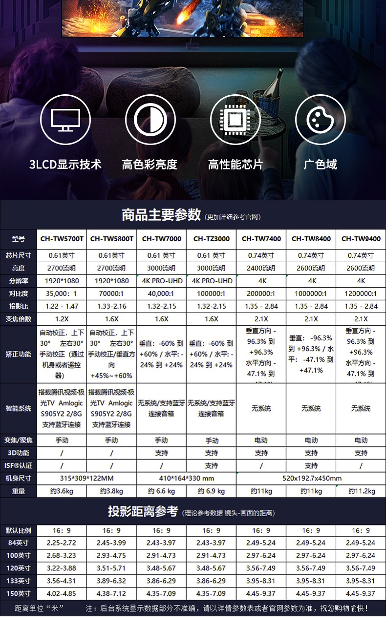 愛普生CH-TW9400/TW8400/TW7400高清投影機支持4K-HDR