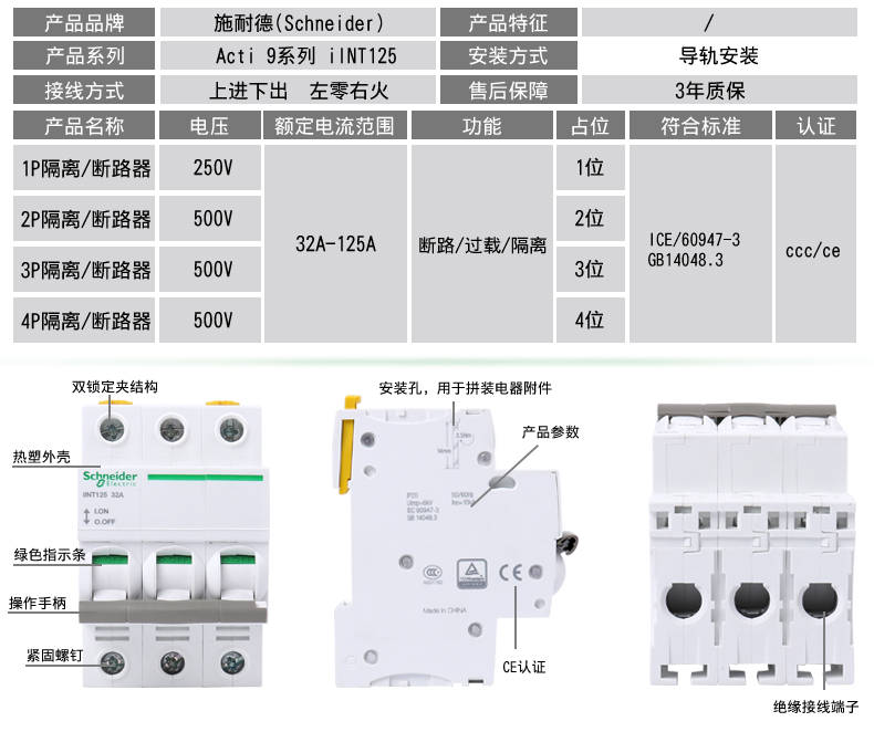 原裝施耐德iINT125小型隔離開關IINT125-2P-63A施耐德斷路器小型負荷開關