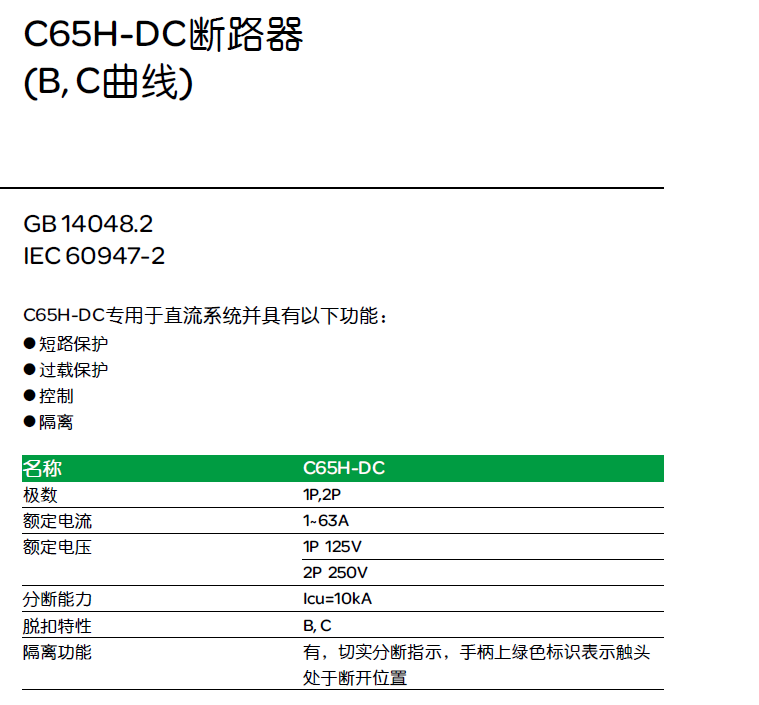 施耐德直流小型斷路器C65N-DC-1P-C32A-C65H-DC直流空氣開關(guān)