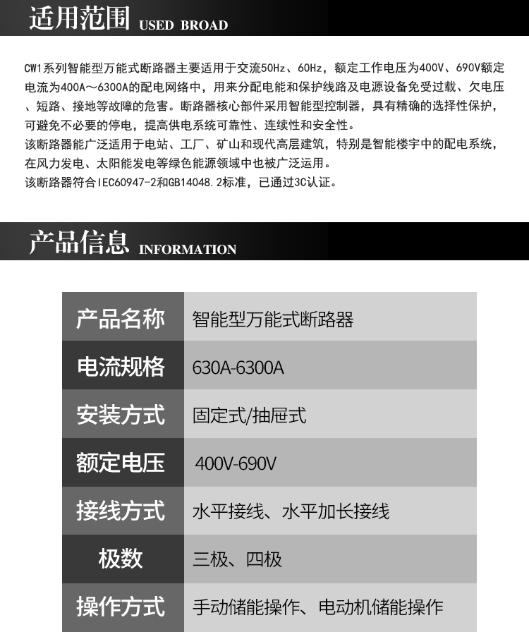 常熟開(kāi)關(guān)智能型萬(wàn)能式斷路器CW1-4000-3P-3200A智能框架-固定式-抽屜式議價(jià)