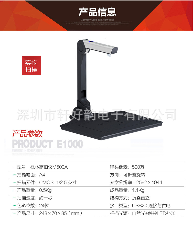 楓林M500A高拍儀-高速文件拍攝儀-高拍儀-辦公的好幫手