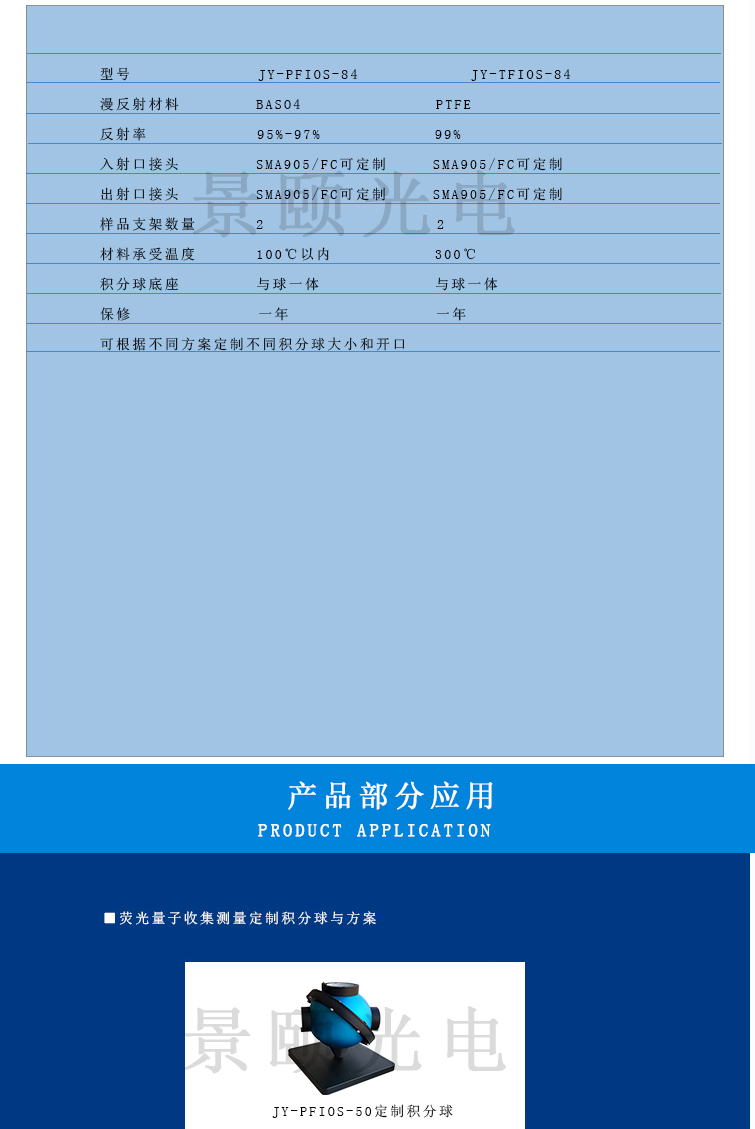 廣州景頤光電生產(chǎn)的積分球 可根據(jù)客戶需要進行設(shè)計積分球的非標定制,我們生產(chǎn)的積分球起反射率高達98%,并且抗老化程度強。重要的是我們的積分球都是支持定制定做的哦,周期一般在10天--20天左右。廣州景頤光電科技有限公司,