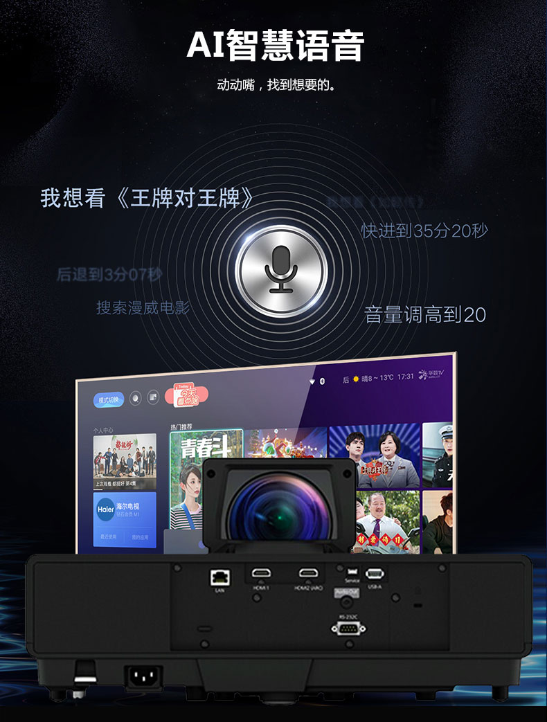 愛普生EH-LS500B/W短焦激光無屏電視內(nèi)置無線投影儀支持4K
