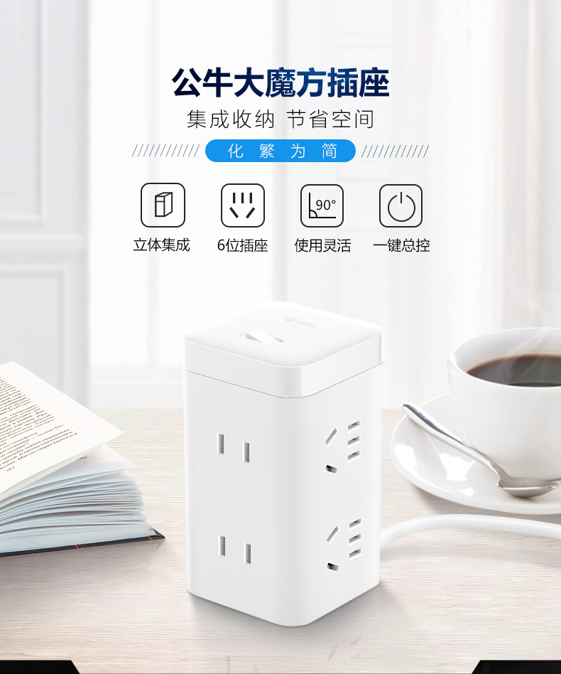 公牛插座大魔方插排插線板接線板-家用轉(zhuǎn)換器UE2240-1.8M