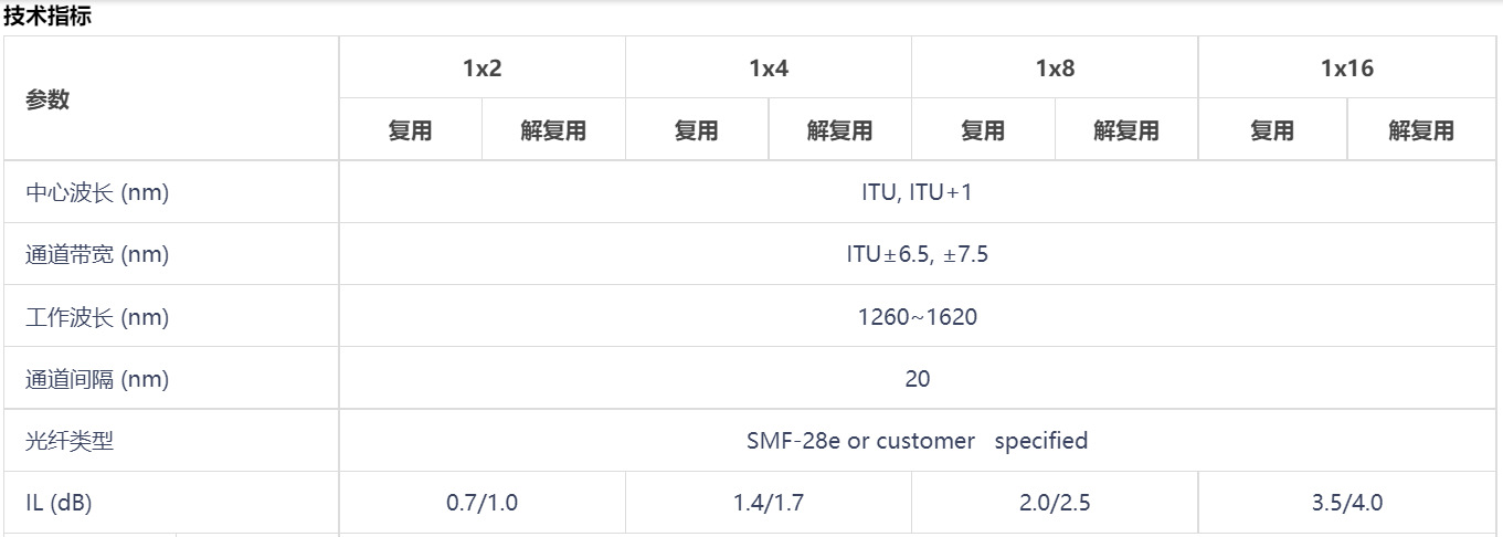 16通道-粗波分復(fù)用器-1310~1610nm-16CH