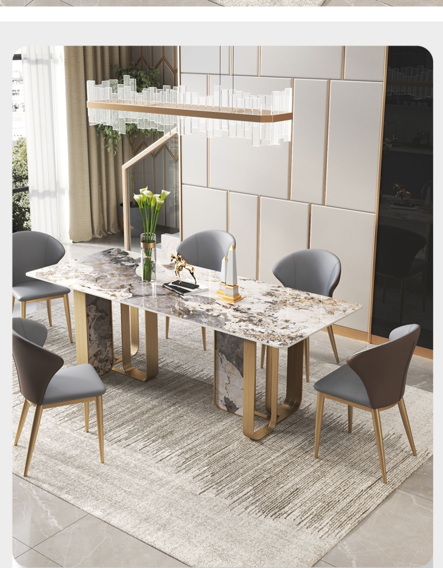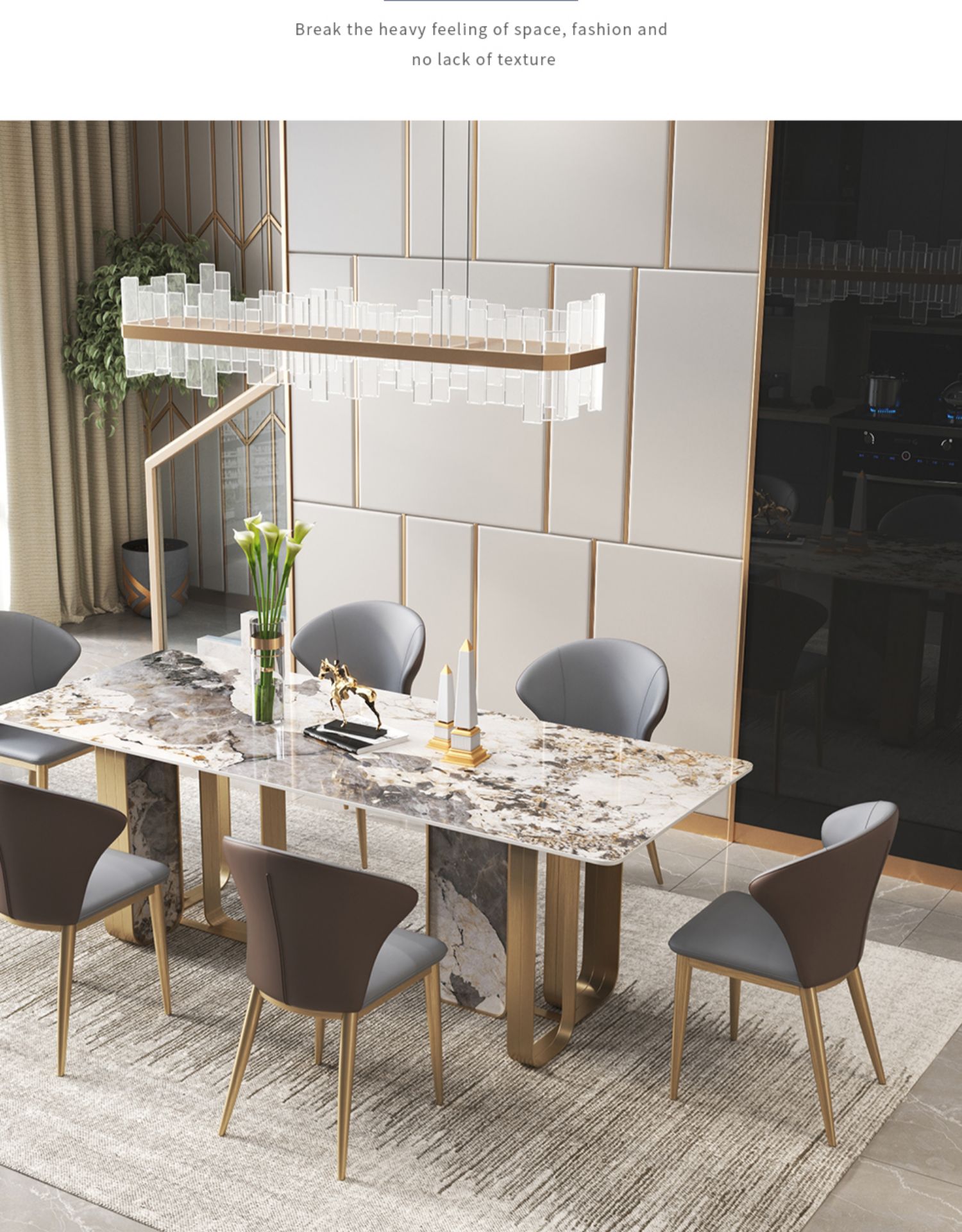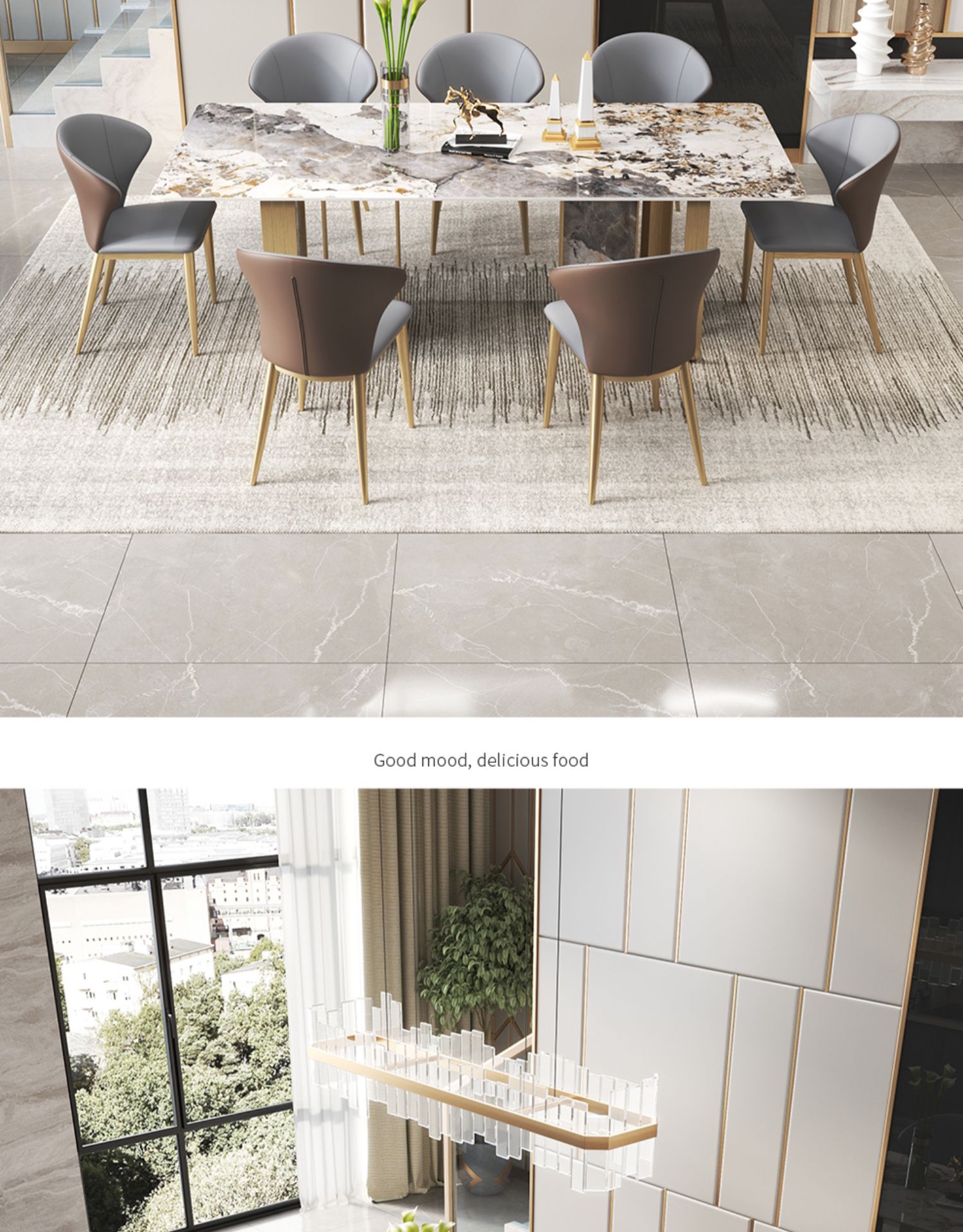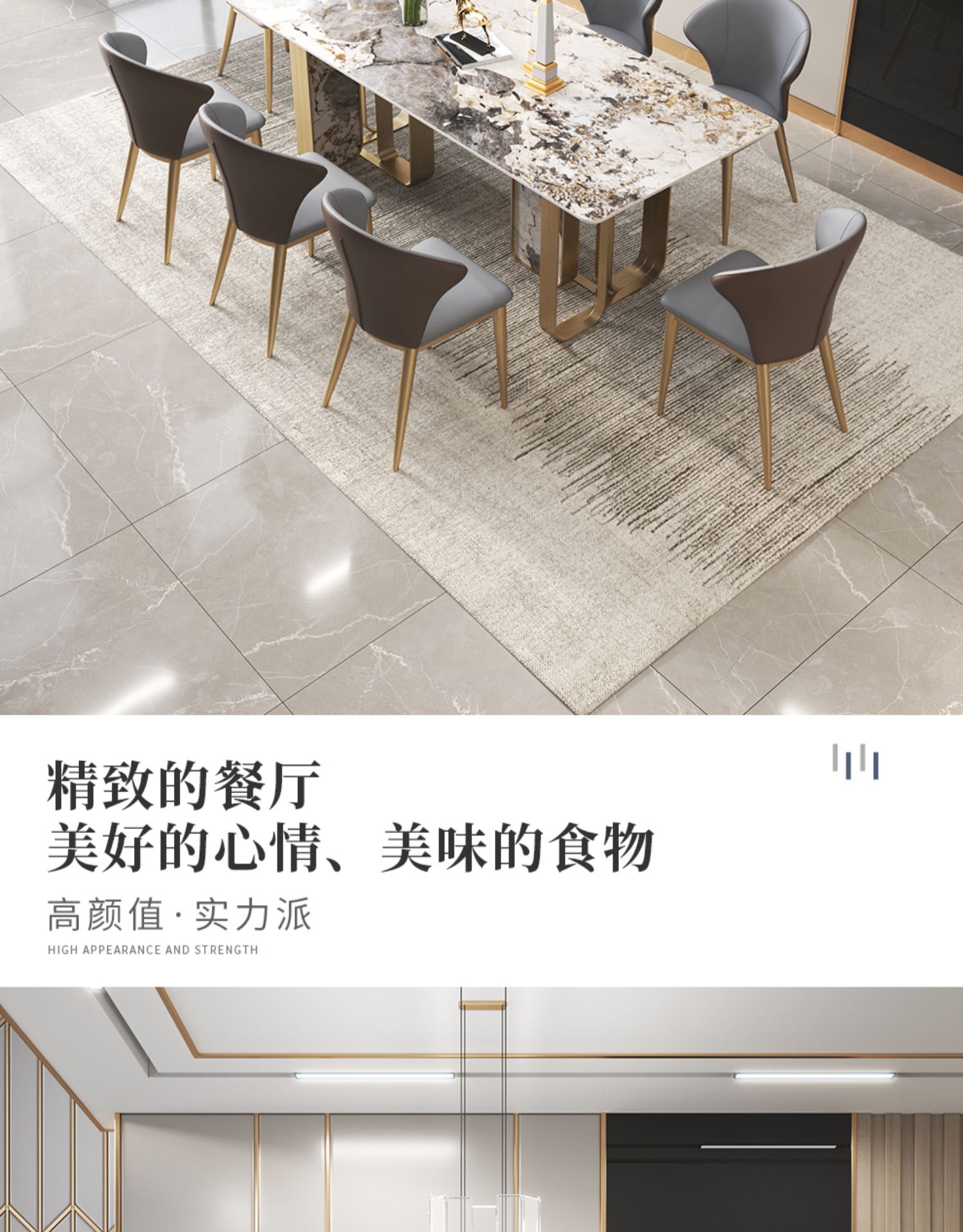 新型亮面巖板 碳素鋼餐桌 精美的紋理勾勒出質(zhì)感生活,簡而不凡
