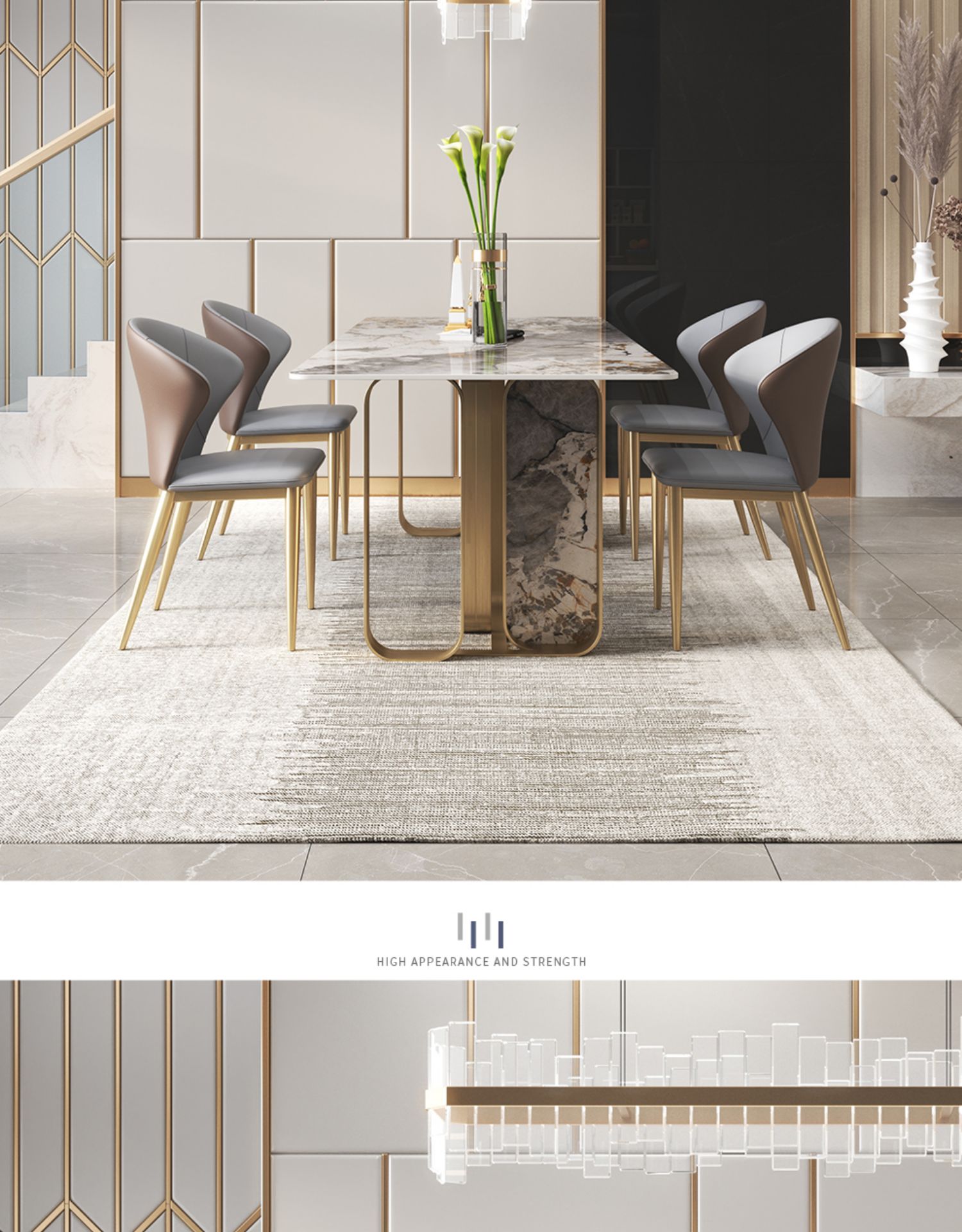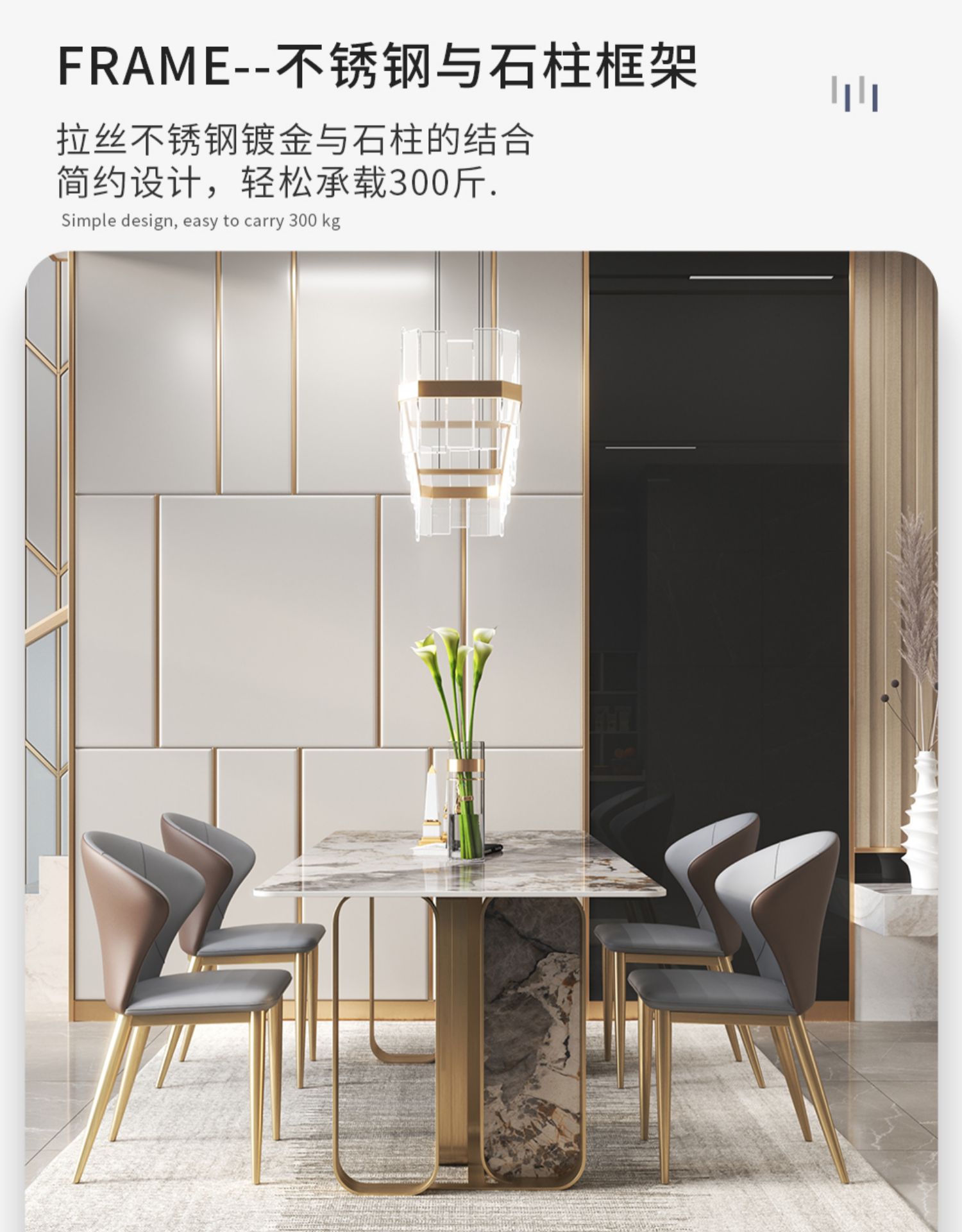 堅硬牢固不銹鋼鍍金+石柱底架 踏實的穩(wěn)定性,堅硬牢固還耐腐蝕,組合支撐穩(wěn)固桌面,還給桌下預(yù)留了活動空間