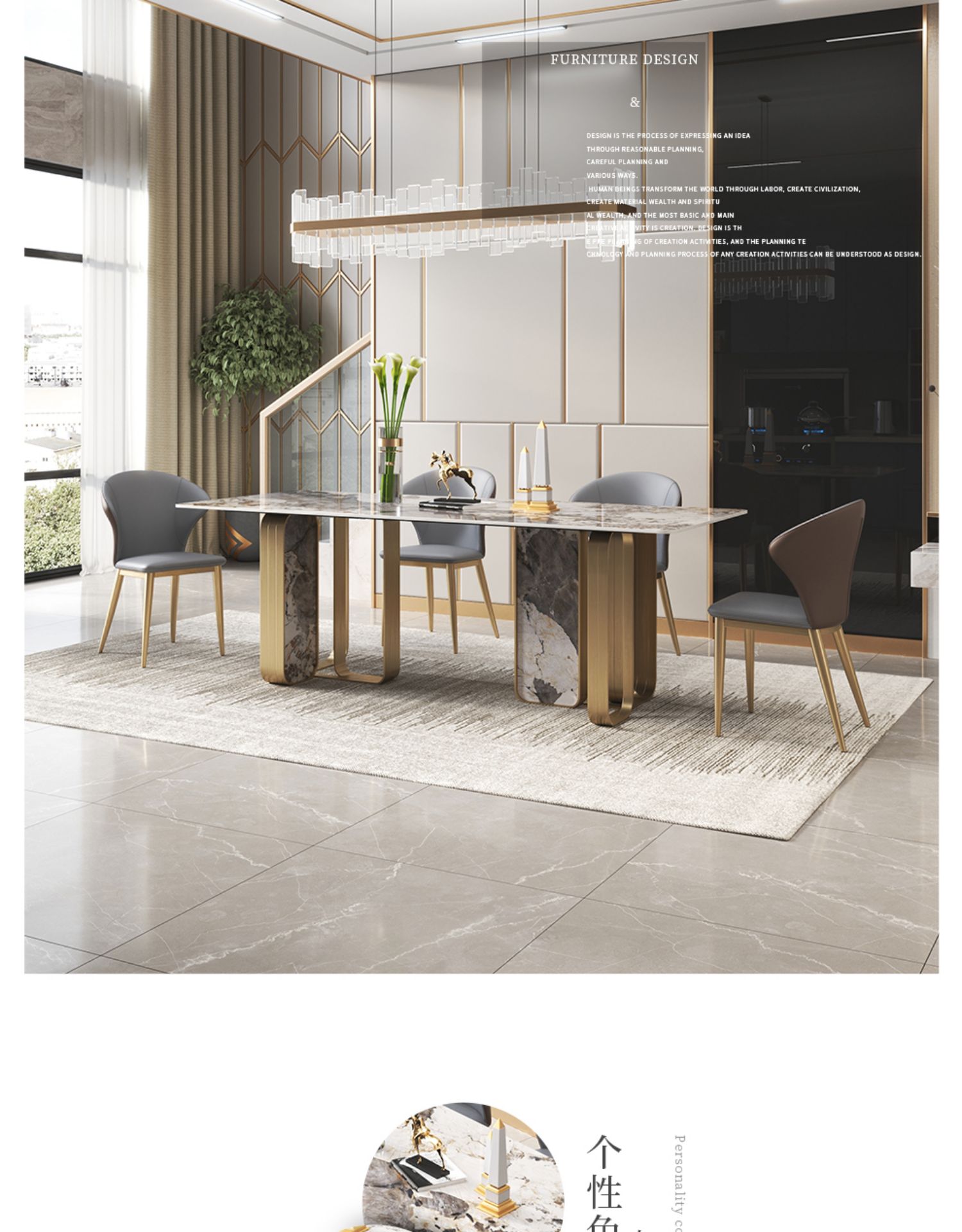 鼎富DF-009 奢石亮面巖板餐桌 酒店意式大理石餐桌椅家具 優(yōu)雅極簡范