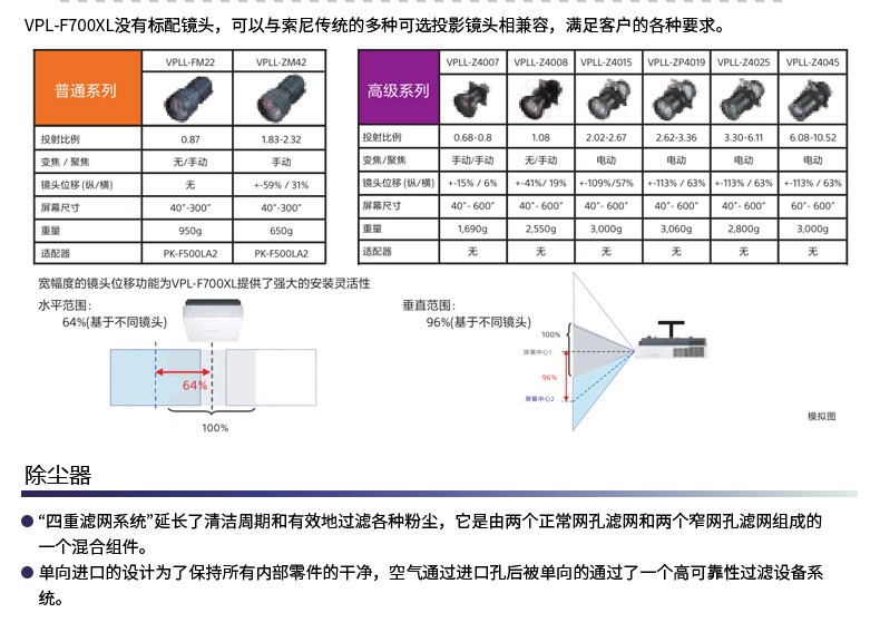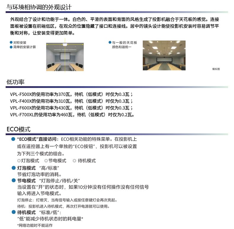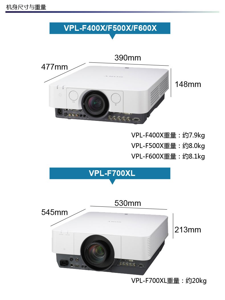 索尼VPL-F500X/VPL-F600X/VPL-F400X商務工程高清投影機