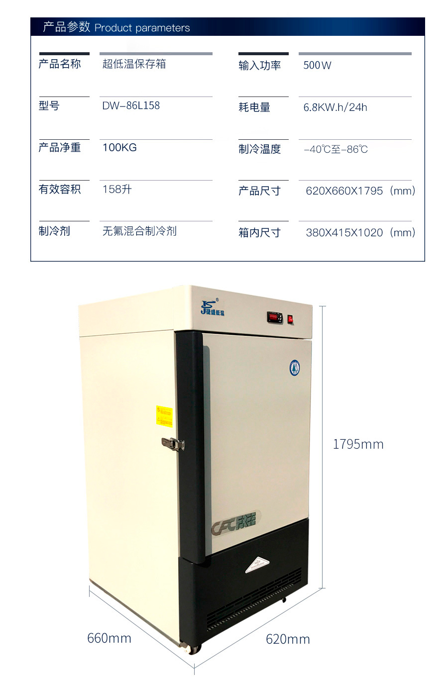 冰柜-捷盛-80度158升立式超低溫冰箱工業(yè)實驗生物細(xì)胞低溫冰柜干冰冷柜