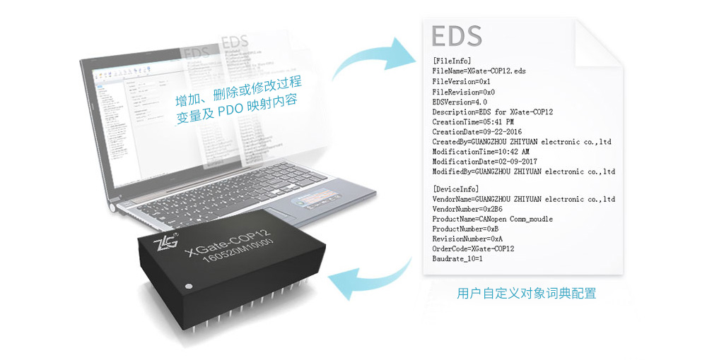 提供模塊CANopen資源定制服務(wù),可幫助客戶修改模塊中資源映射等對象字典中任意內(nèi)容,并且生成EDS文件,讓客戶無需為維護CANopen而煩擾,5個工作日內(nèi)即可完成,快速接入任何CANopen網(wǎng)絡(luò)。