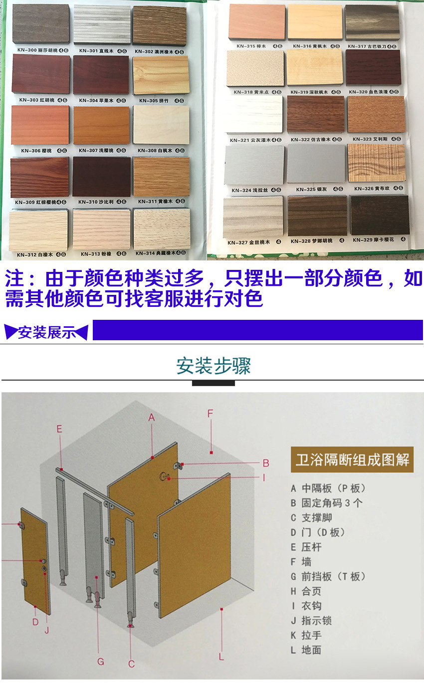 4、衛(wèi)生間隔斷屬于重貨,貨運(yùn)到貨時間視路程遠(yuǎn)近,運(yùn)輸天氣路況等因素的原因,請以具體到貨時間為準(zhǔn),不能作為約定到貨時間,貨沒到而給買家差評或中評的依據(jù)。如遇急貨請拍前說明。