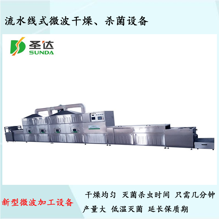 靈芝粉微波干燥加熱原理穿透性微波比其它用于輻射加熱的電磁波,如紅外線(xiàn)、遠(yuǎn)紅外線(xiàn)等波長(zhǎng)更長(zhǎng),因此具有更好的穿透性。物料的內(nèi)部、外部幾乎同時(shí)加熱升溫,形成體熱源狀態(tài),大大縮短了常規(guī)加熱中的熱傳導(dǎo)時(shí)間且干燥均勻。此種方式可以使靈芝孢子粉干燥的更均勻,并且不會(huì)破壞它的活性成分。所以不要小看生產(chǎn)靈芝孢子粉的每一個(gè)環(huán)節(jié),正是由各種嚴(yán)謹(jǐn)規(guī)范的生產(chǎn)才能生產(chǎn)出來(lái)更高品質(zhì)的靈芝孢子粉。 隧道式微波烘干機(jī),微波殺菌機(jī)具備自動(dòng)控溫系統(tǒng),自動(dòng)控制微波密度系統(tǒng)、自動(dòng)報(bào)警系統(tǒng)、監(jiān)視系統(tǒng)、傳輸帶自動(dòng)糾偏系統(tǒng)、傳輸變頻調(diào)速系統(tǒng)、物料控制系統(tǒng)、PLC控制系統(tǒng)等。該機(jī)流水線(xiàn)作業(yè),操作簡(jiǎn)單、產(chǎn)量高 加熱速度快、加熱均勻、可控性好,24小時(shí)連續(xù)工作。