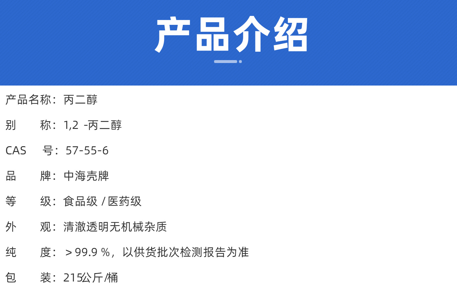 食品級(jí)防凍液丙二醇-冷鏈運(yùn)輸防凍液1,2丙二醇-中海殼-上?,F(xiàn)貨