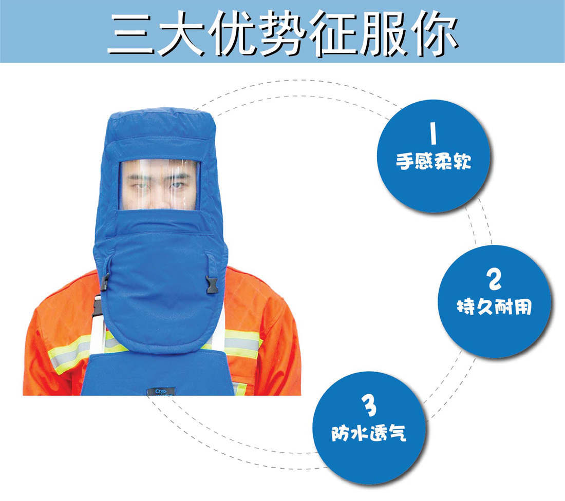 ②面屏部分具有防霧技術(shù)使視野更加清晰:低溫面罩采用抗超低溫高端面鏡,抗擠壓、抗沖擊、防霧防眩暈,防護(hù)低溫液體飛濺,在冷凍空氣中長(zhǎng)時(shí)間工作非常舒服。