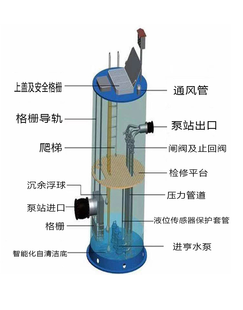 華強(qiáng)地埋式玻璃鋼一體化泵站-雨水提升站-污水分流提升井筒