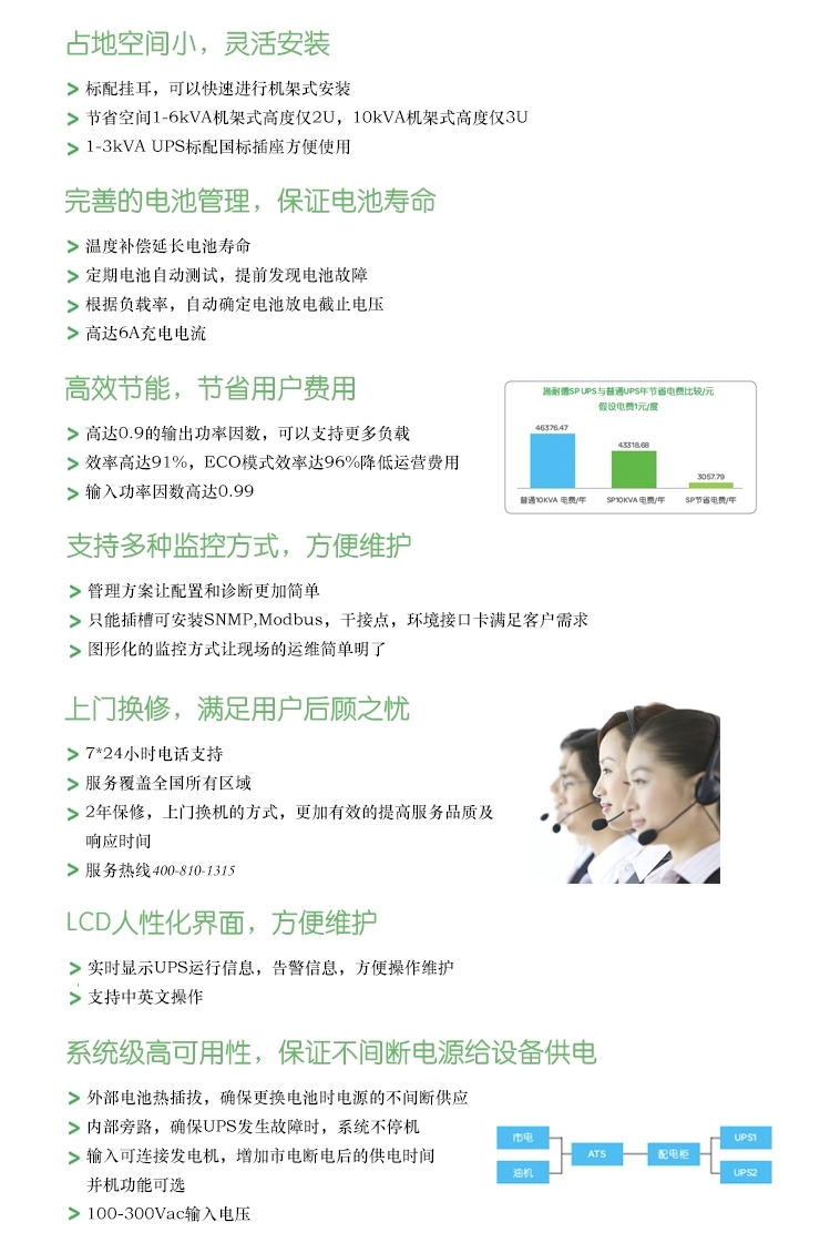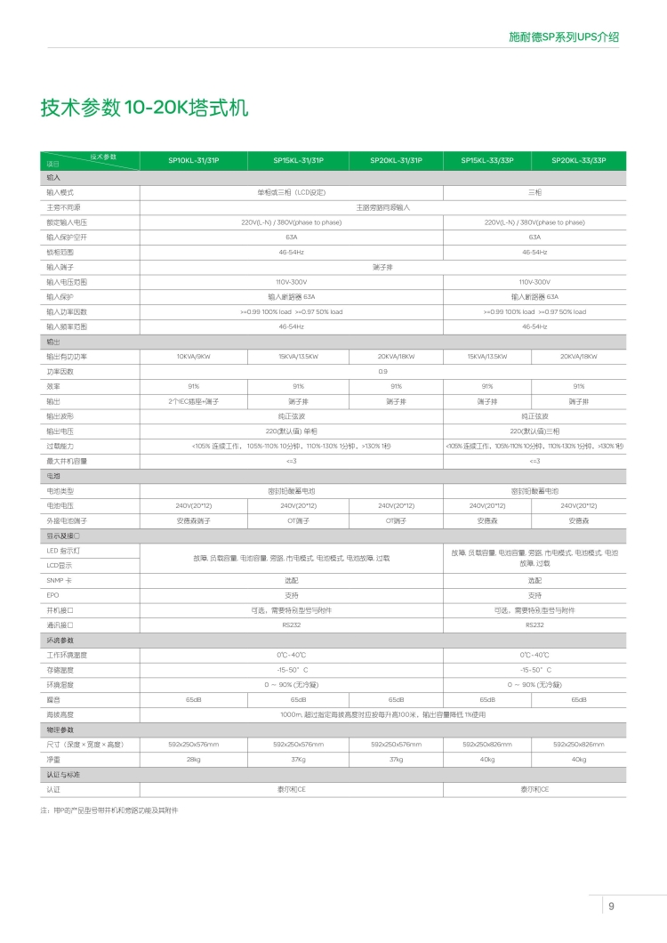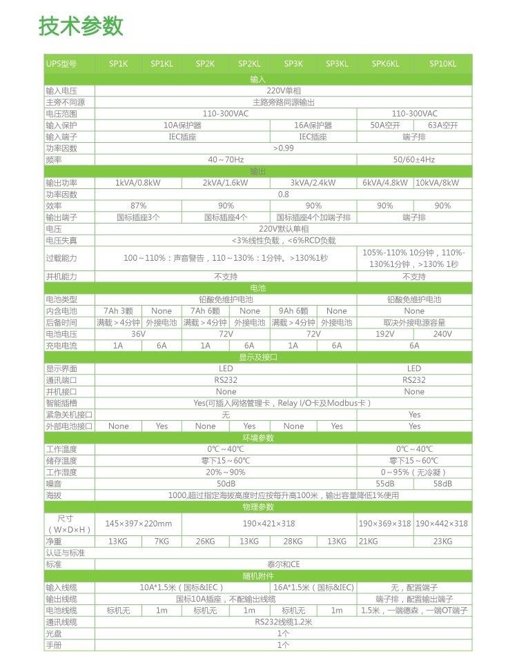 眾帆億德-UPS電源SP10KL-31三進單出10KVA/8KW在線式240V