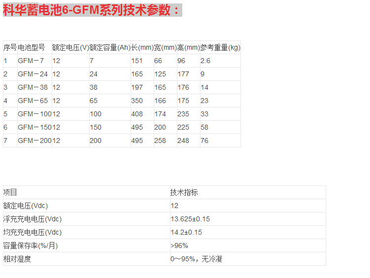 科華蓄電池6-GFM-65-12V65AH機(jī)房UPS直流屏用