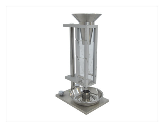 上部組合漏斗:由二個圓錐形漏斗裝配而成,期間由一段圓柱隔開,并放入一個孔徑為1.18mm的黃銅篩網(wǎng);