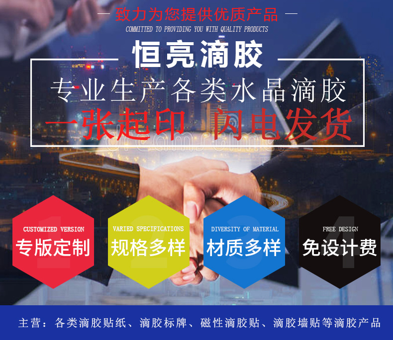 主營產(chǎn)品: 水晶滴膠產(chǎn)品, 紙品印刷類, 不干膠, 貼紙, 標(biāo)簽類, 洗水嘜 洗水標(biāo)