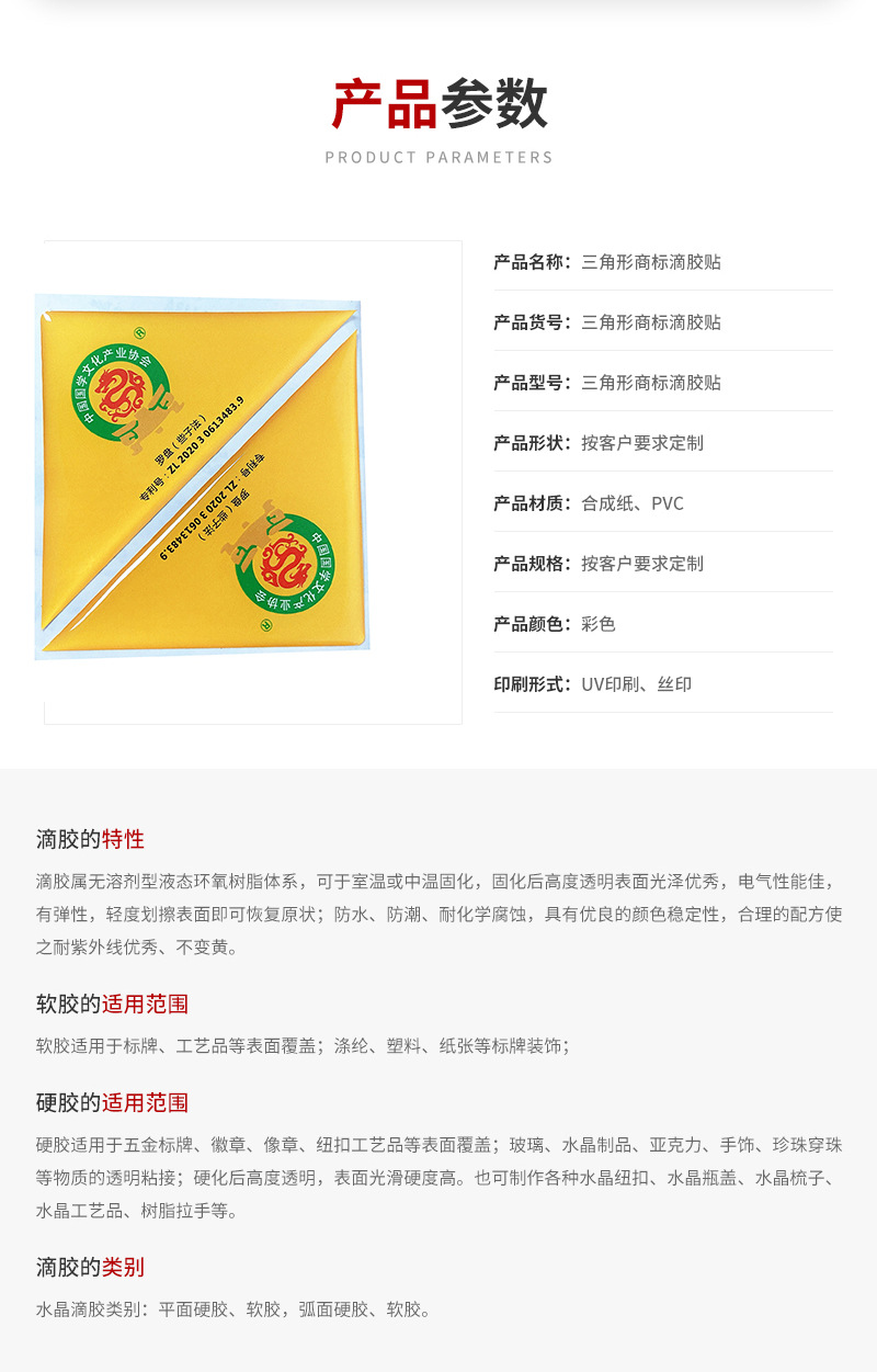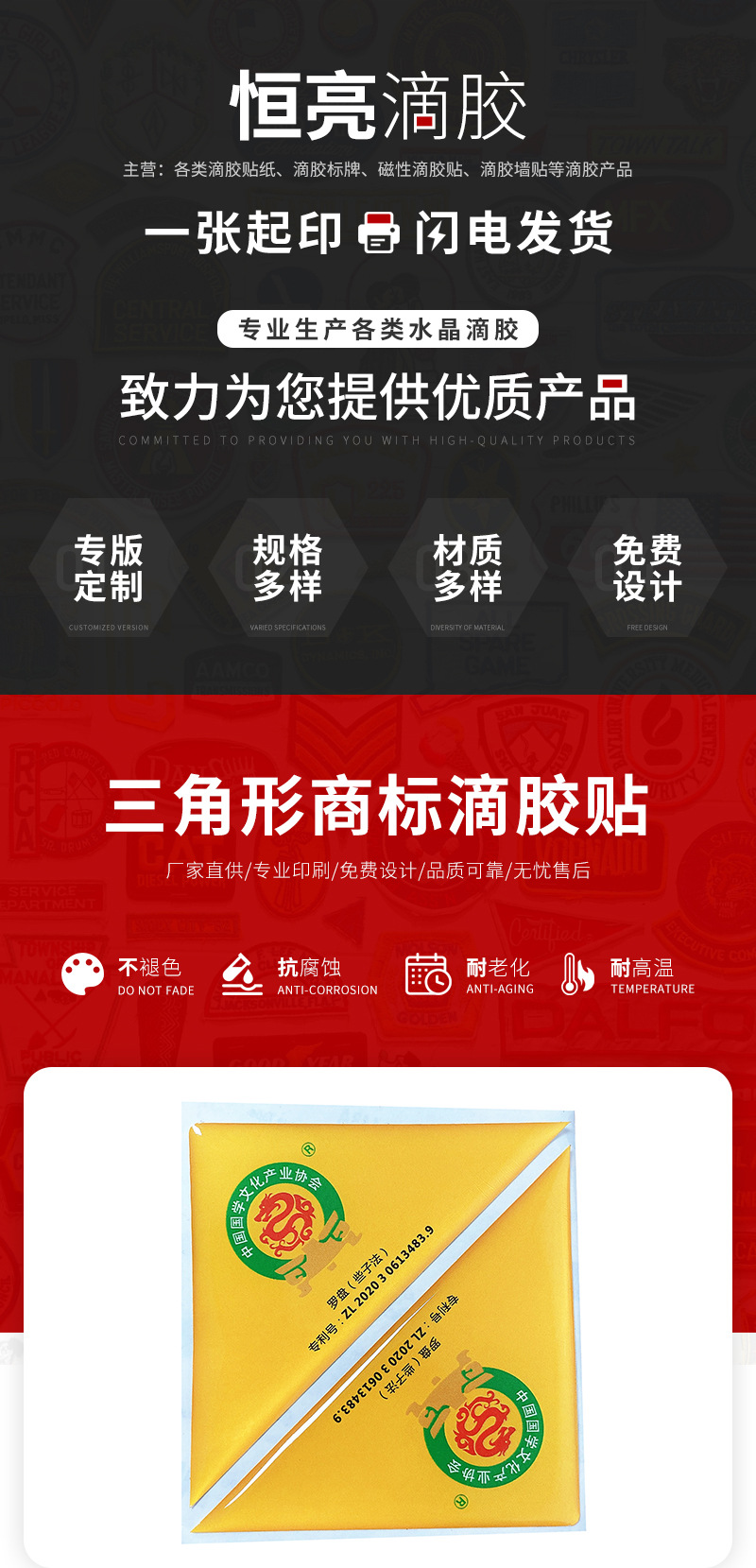 恒亮-三角形商標(biāo)logo滴膠貼來圖定制彩色PVC安全標(biāo)貼水晶貼